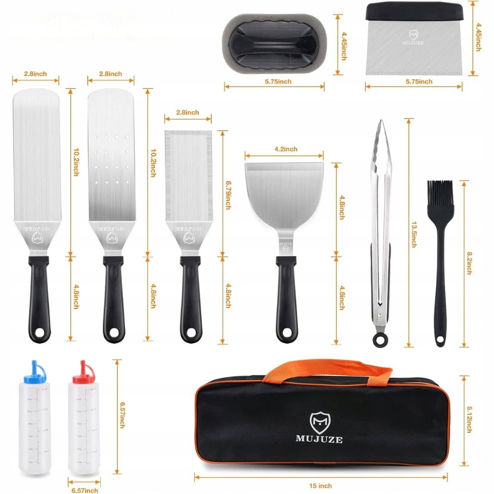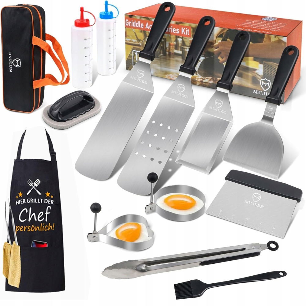 MUJUZE Zestaw akcesoriów do planchy i grilla - dla każdego mistrza BBQ