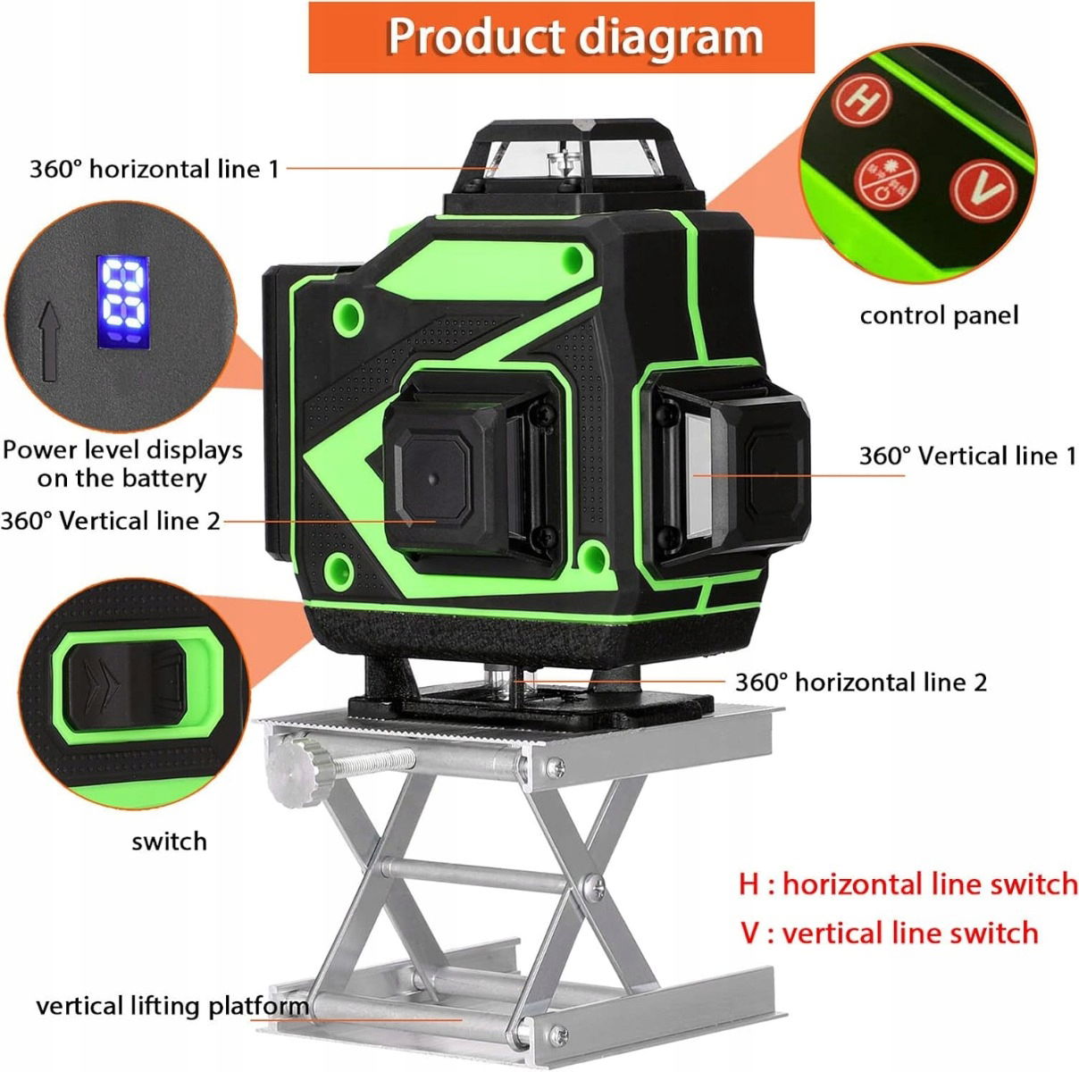 Wykorzystuje szkło optyczne, delikatna transmisja, z wyraźnym światłem laserowym. Wykorzystaj 16 linii laserowych dla dokładniejszego pozycjonowania, z systemem samopoziomowania, elastycznością i stabilnością. Kompaktowy rozmiar, lekki i przenośny, łatwy do przenoszenia w torbie i zapewnia szybką i wygodną mobilność i przechowywanie.