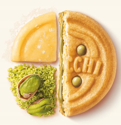 Ciasteczka wypełnione pysznym kremem pistacjowym. Pachnący wafelek z kruchego ciasta Baiocchi spotyka się z pysznym i miękkim kremem pistacjowym.