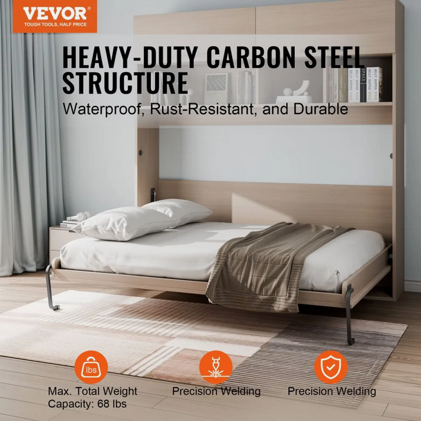 Wytrzymałość i wysoka nośność: Ten zestaw łóżka Murphy'ego DIY jest wykonany z wytrzymałej stali węglowej i wytrzymuje obciążenie do 20 kg. Czarna powłoka poprawia estetykę, zapewniając jednocześnie wodoodporność i odporność na rdzę. Bezszwowe spawy gwarantują integralność konstrukcji i długowieczność bez rdzy.