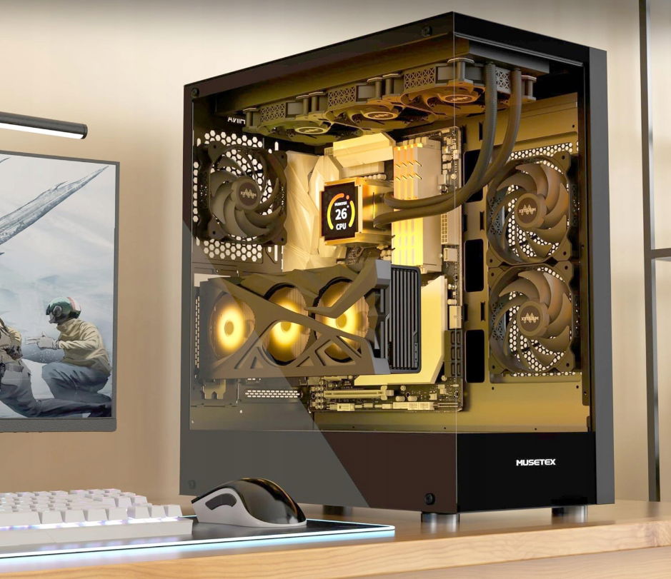 MUSETEX ATX obudowa PC, 360 mm, Full-View obudowa gamingowa BEZ RGB
