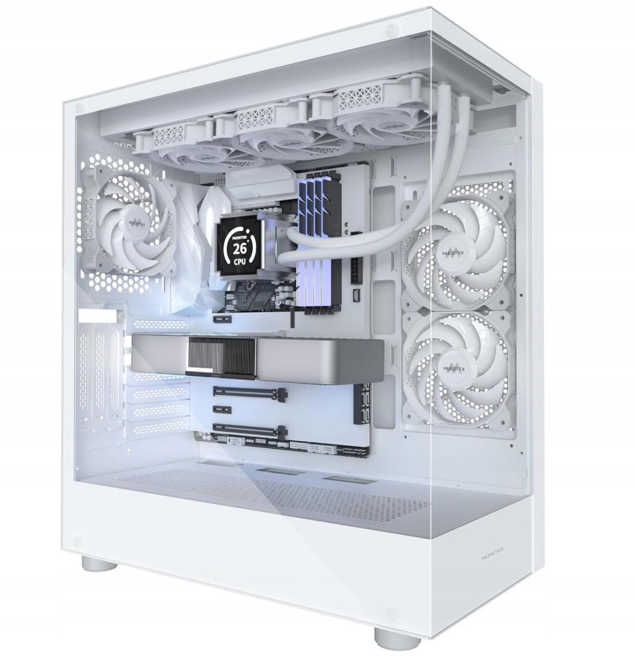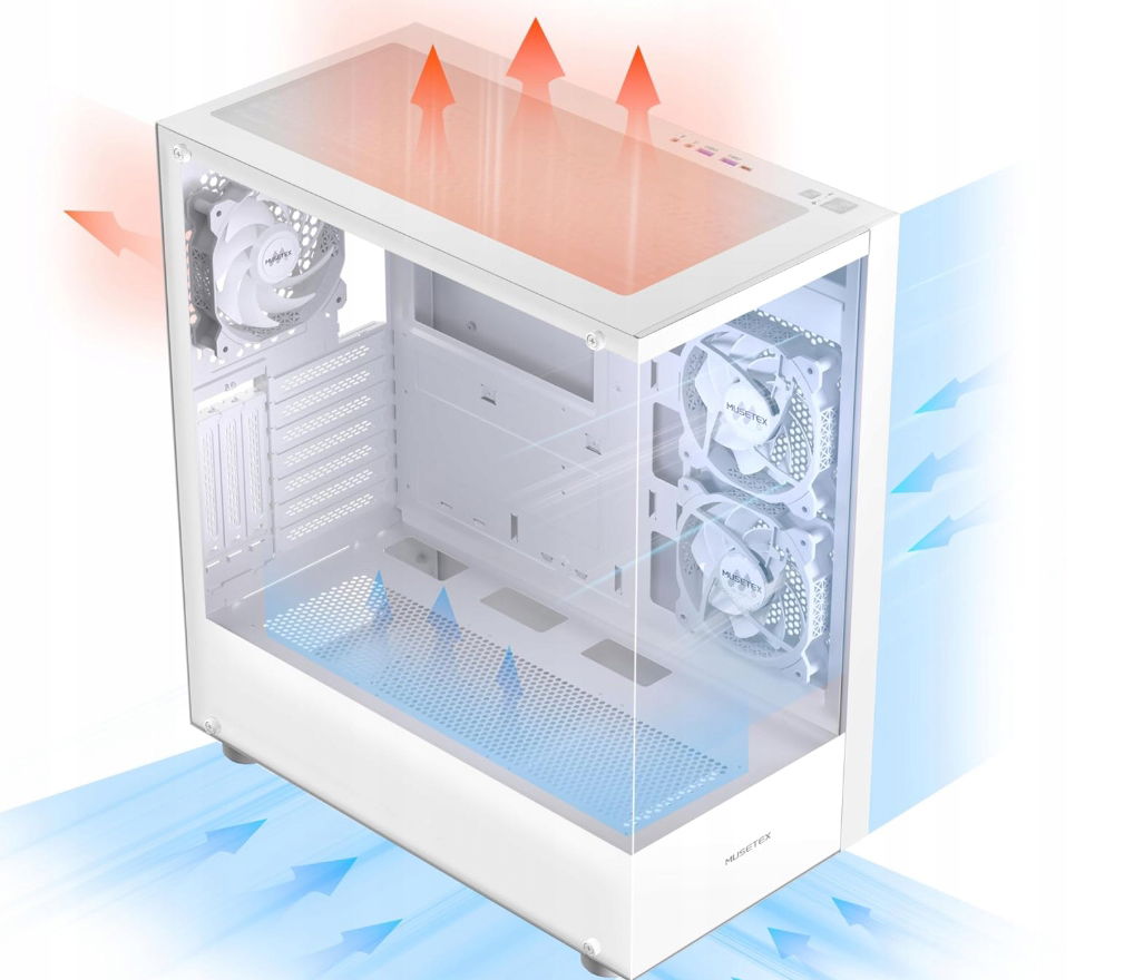 MUSETEX Obudowa ATX PC Pre-install 3 wentylatory biała BEZ RGB