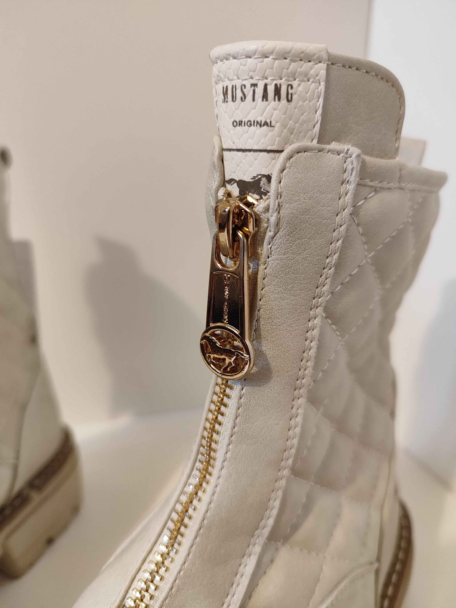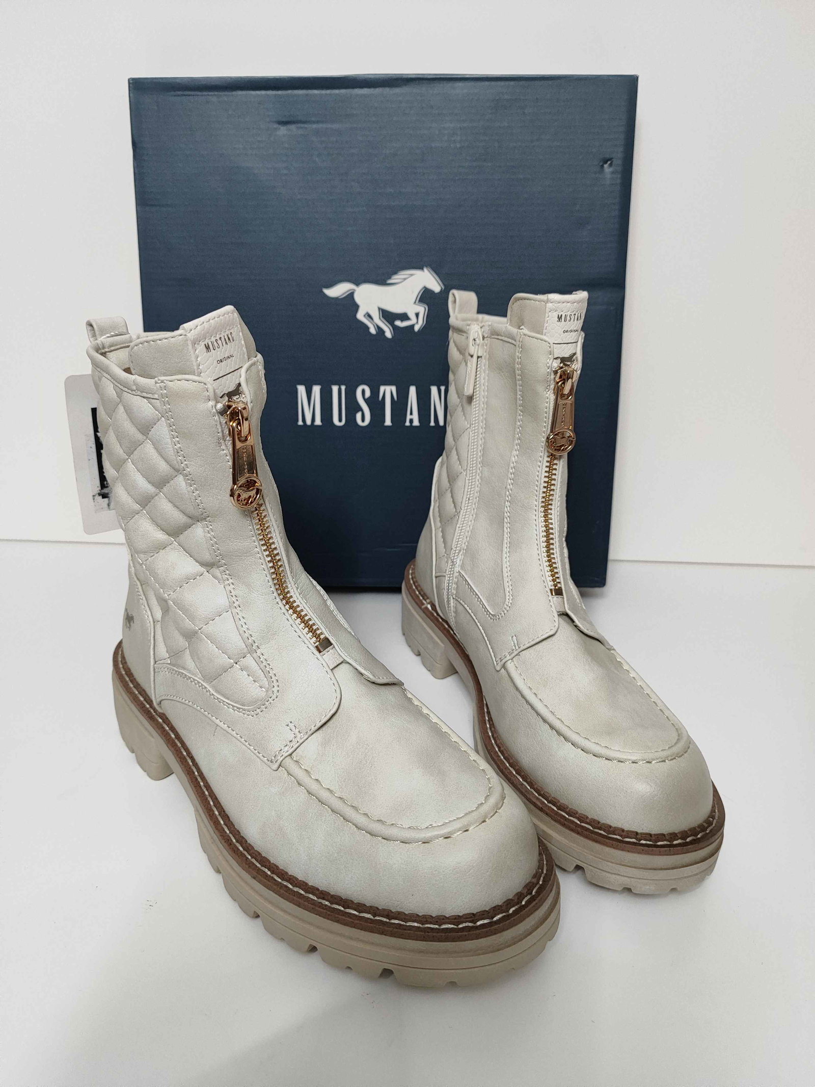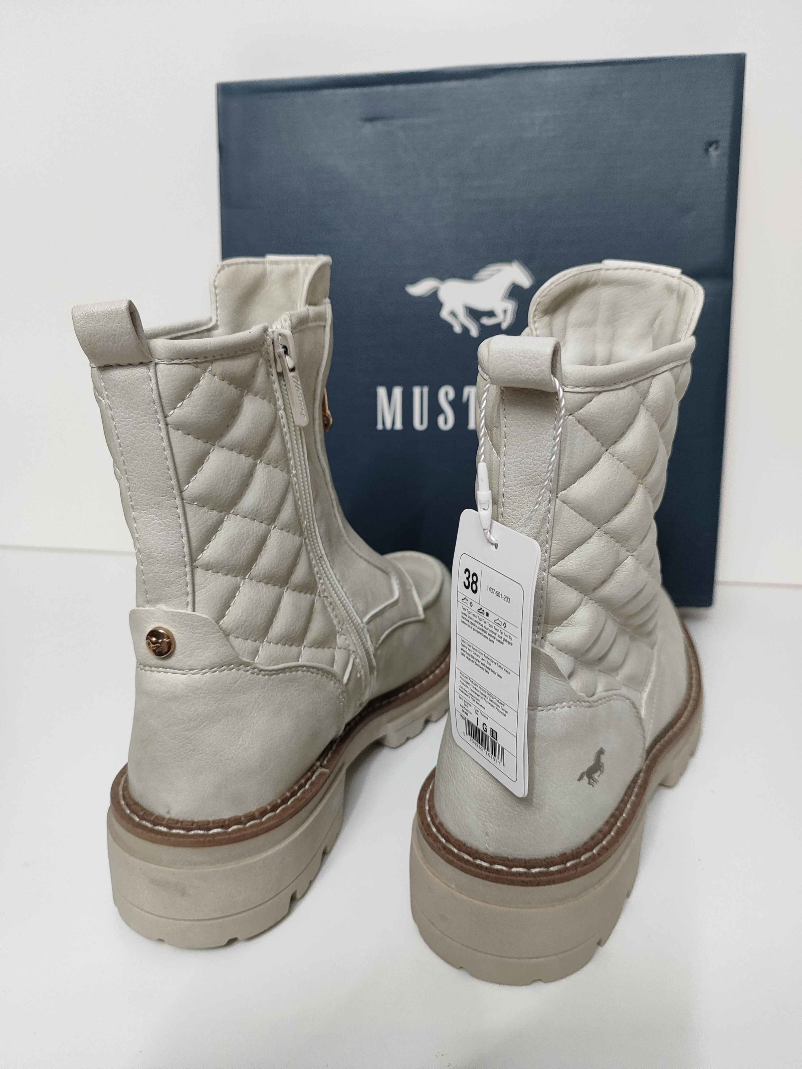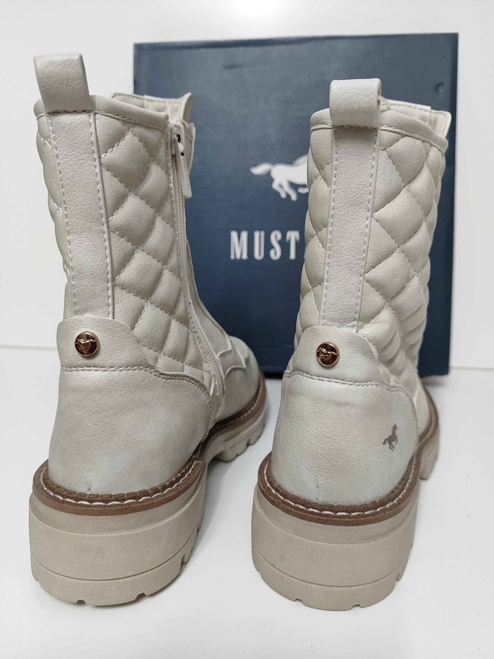 Mustang Botki Pikowane Stylowe Buty Damskie Białe 38