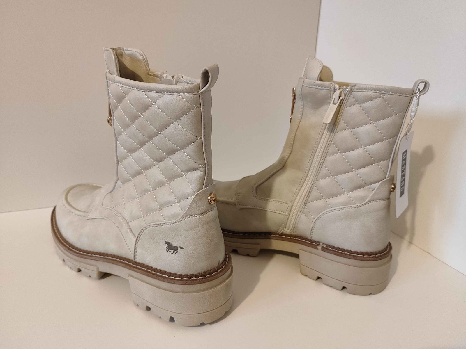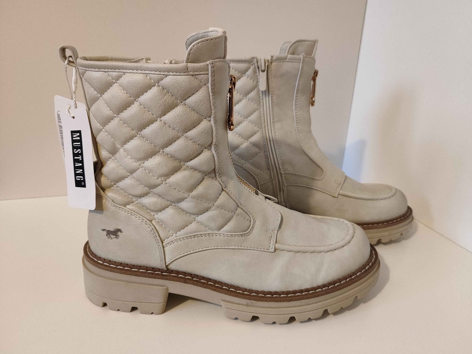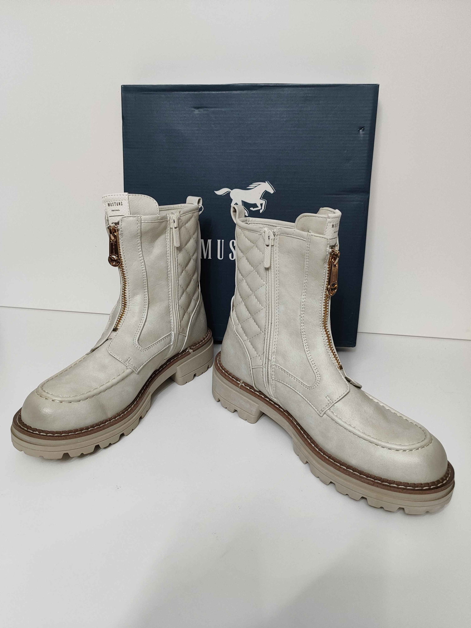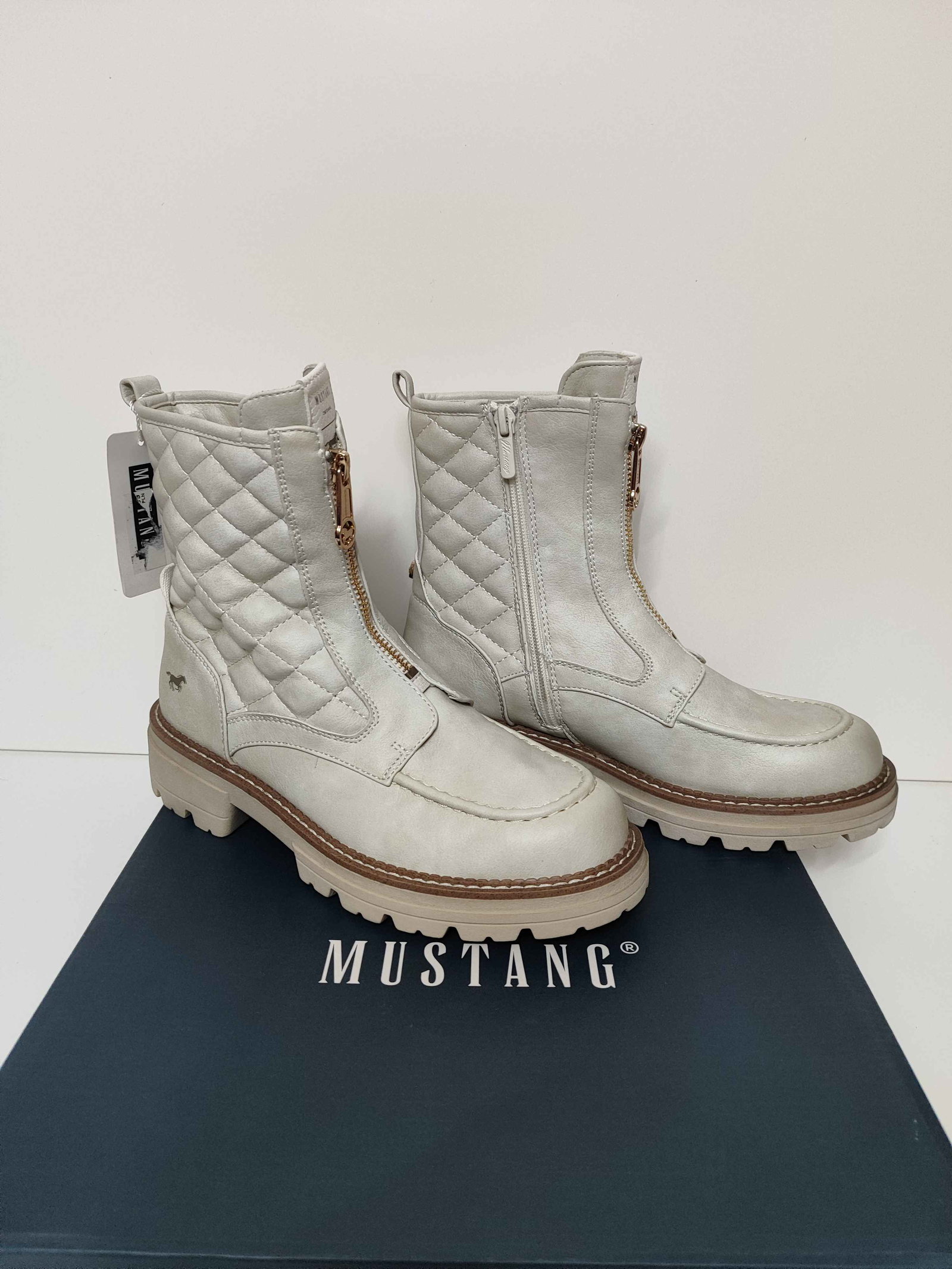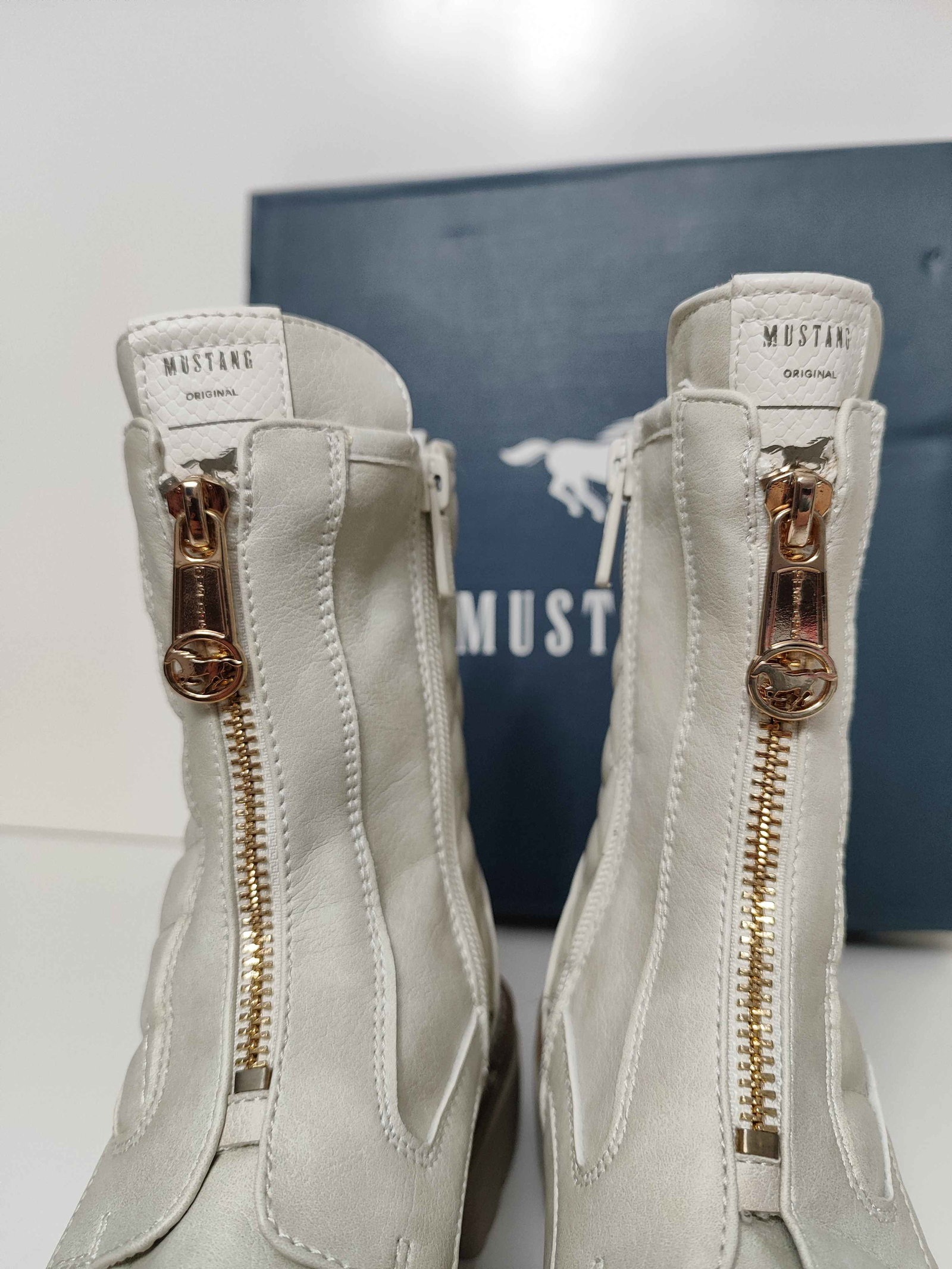 Mustang Botki Pikowane Stylowe Buty Damskie Białe 38