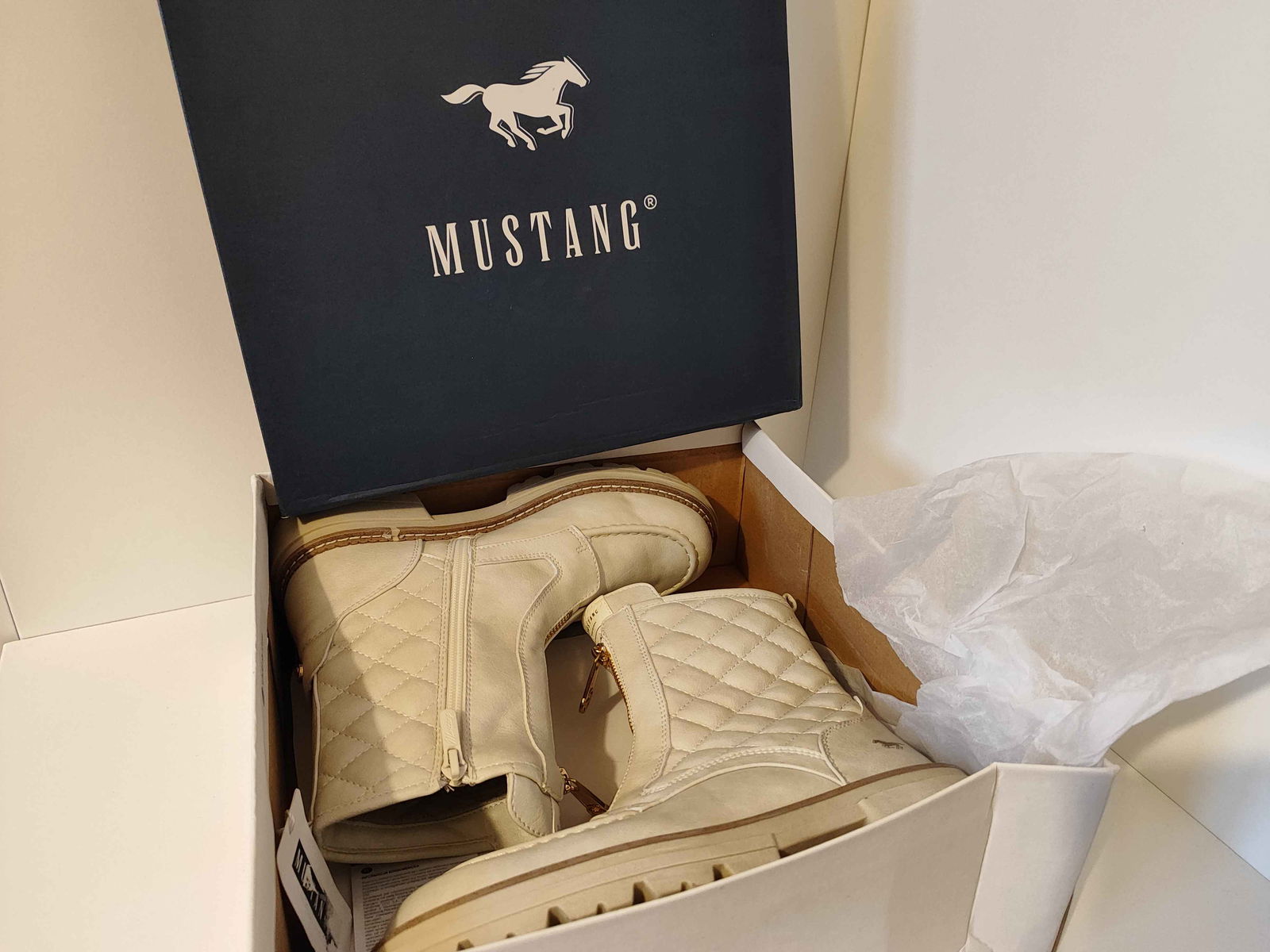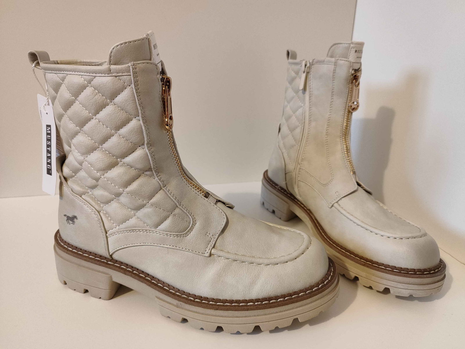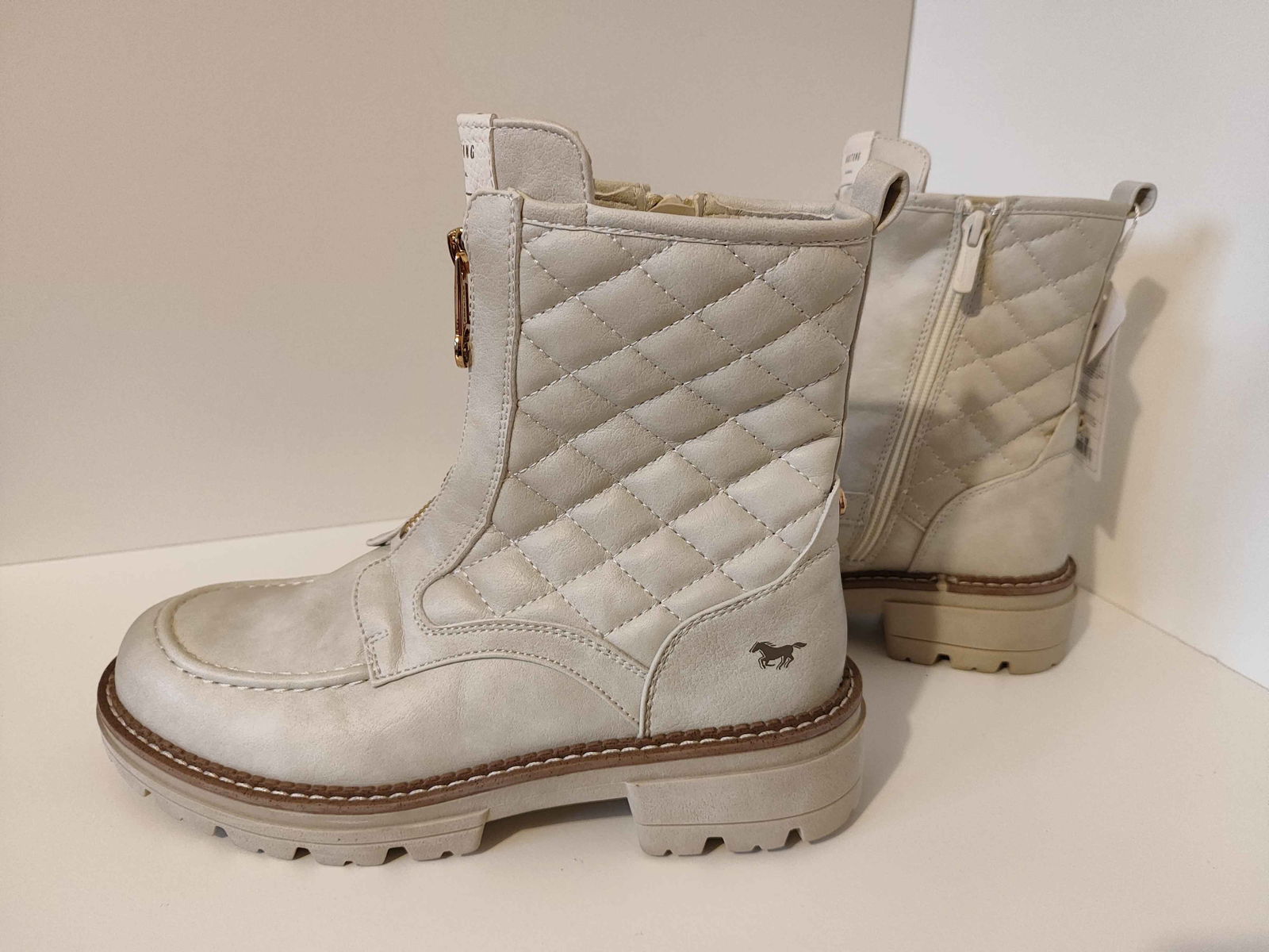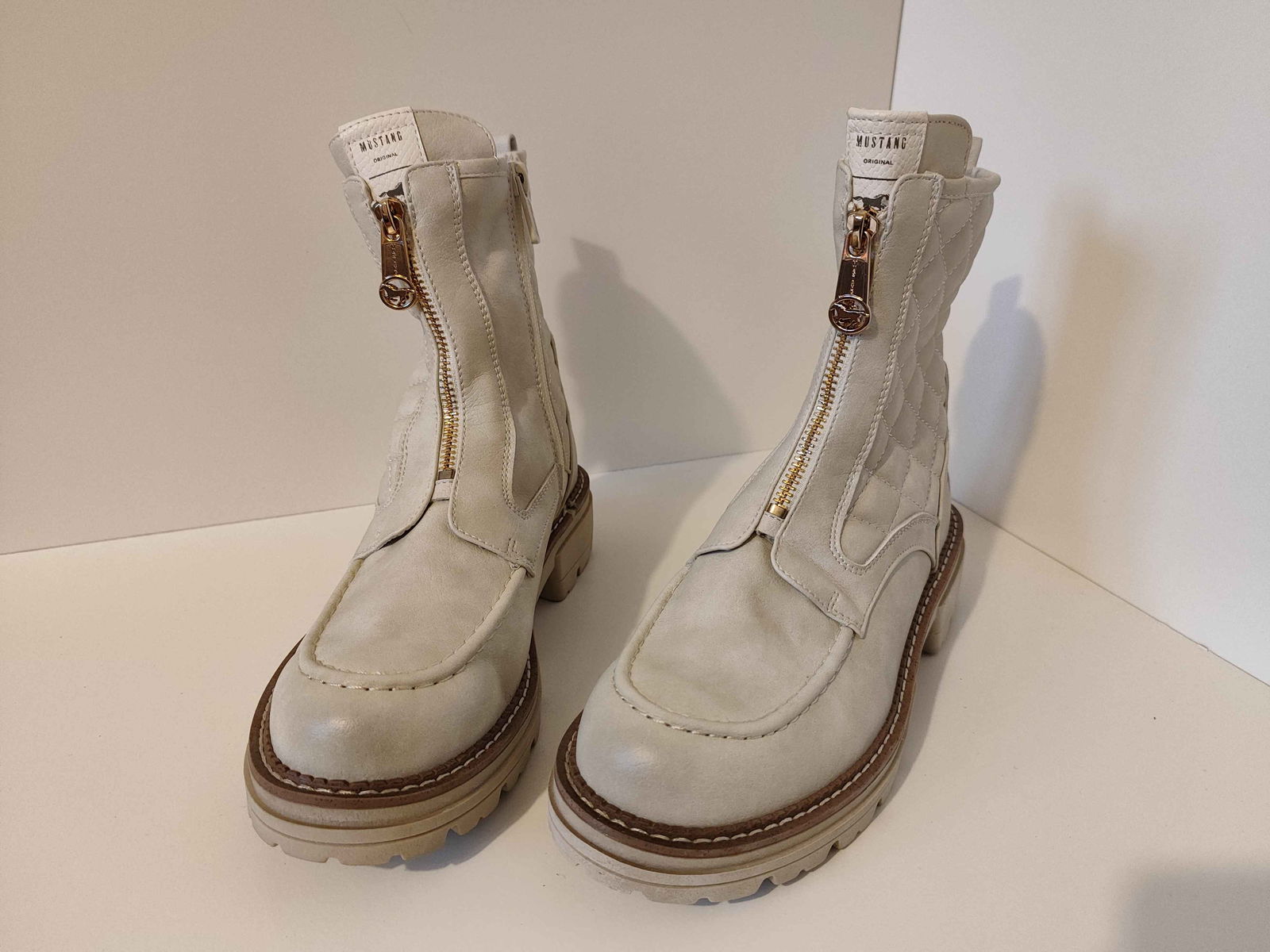 Mustang Botki Pikowane Stylowe Buty Damskie Białe 38