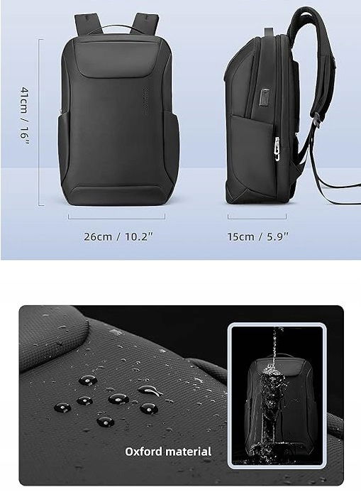 Muzee plecak laptop 15,6" USB wodoodporny czarny antykradzież L