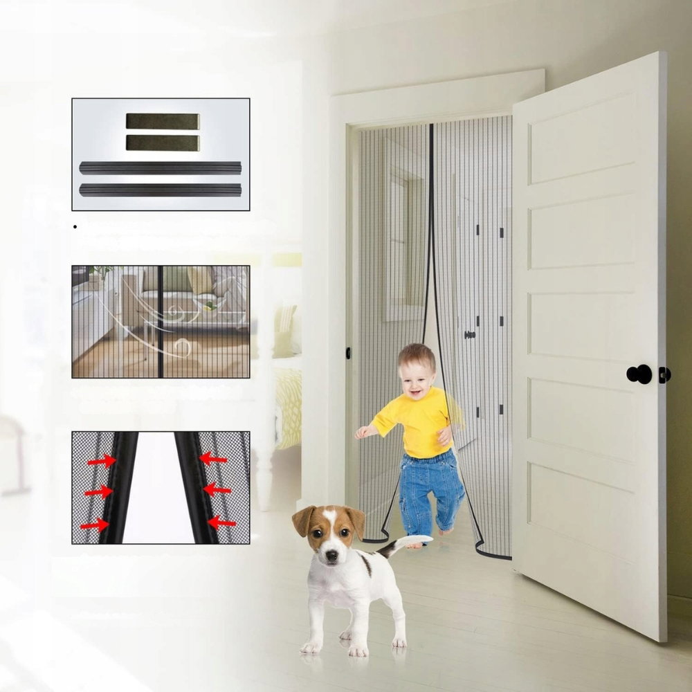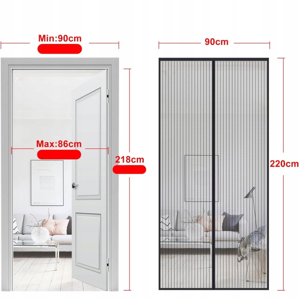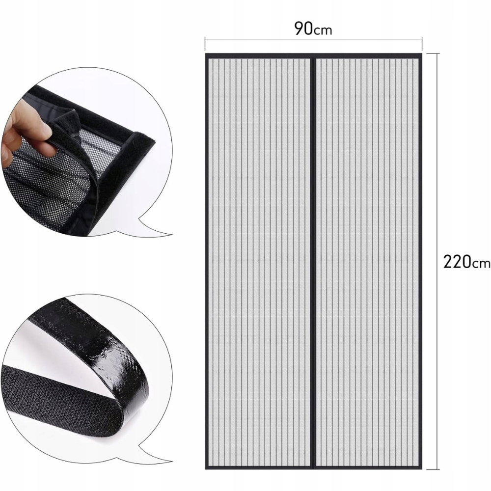 ✨ MYCARBON Magnetyczna Moskitiera na Drzwi 90x220 cm, Czarna ✨