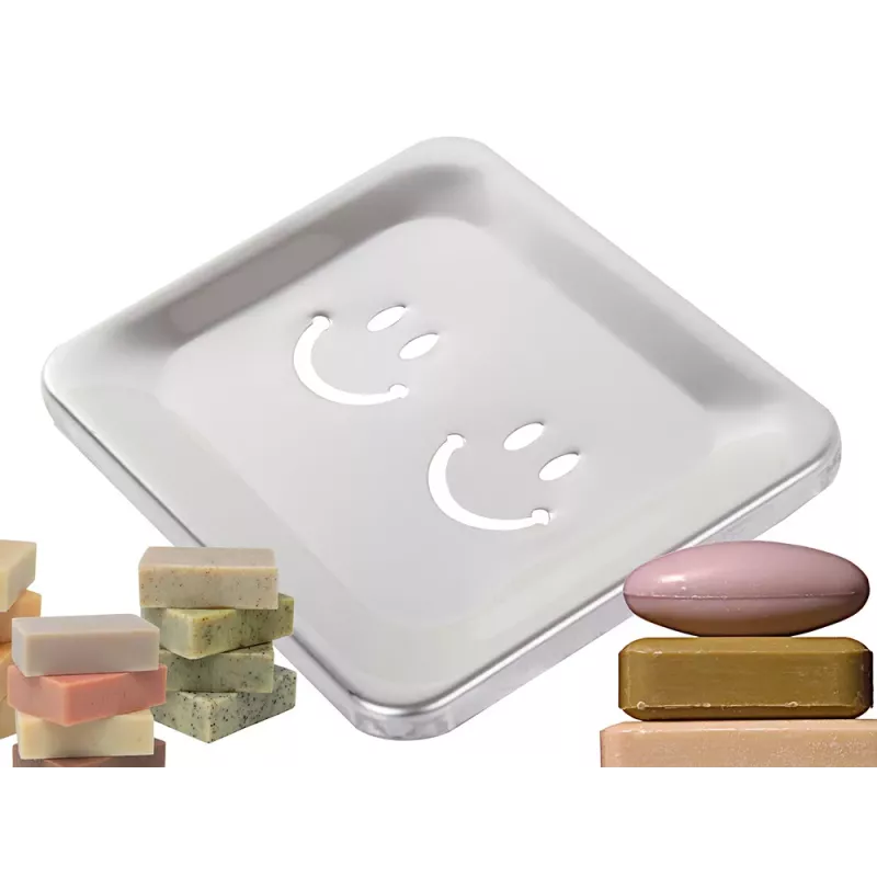 Mydelniczka metalowa z "uśmiechem" świetnie sprawdzi się w każdej łazience. Nadmiar wody z mydelniczki wypłynie poprzez otwory w podstawie mydelniczki a mydło pozostanie suche.