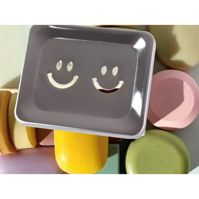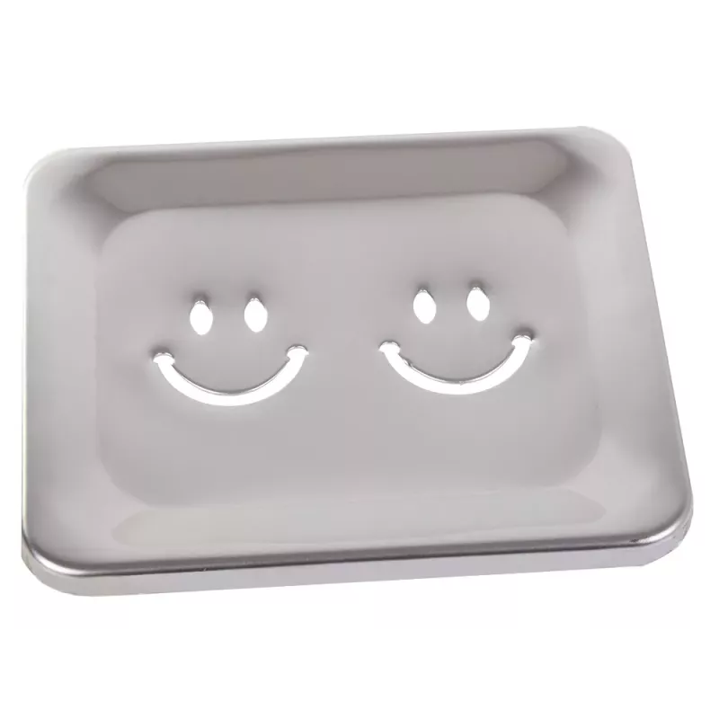 Mydelniczka metalowa z "uśmiechem" świetnie sprawdzi się w każdej łazience. Nadmiar wody z mydelniczki wypłynie poprzez otwory w podstawie mydelniczki a mydło pozostanie suche.