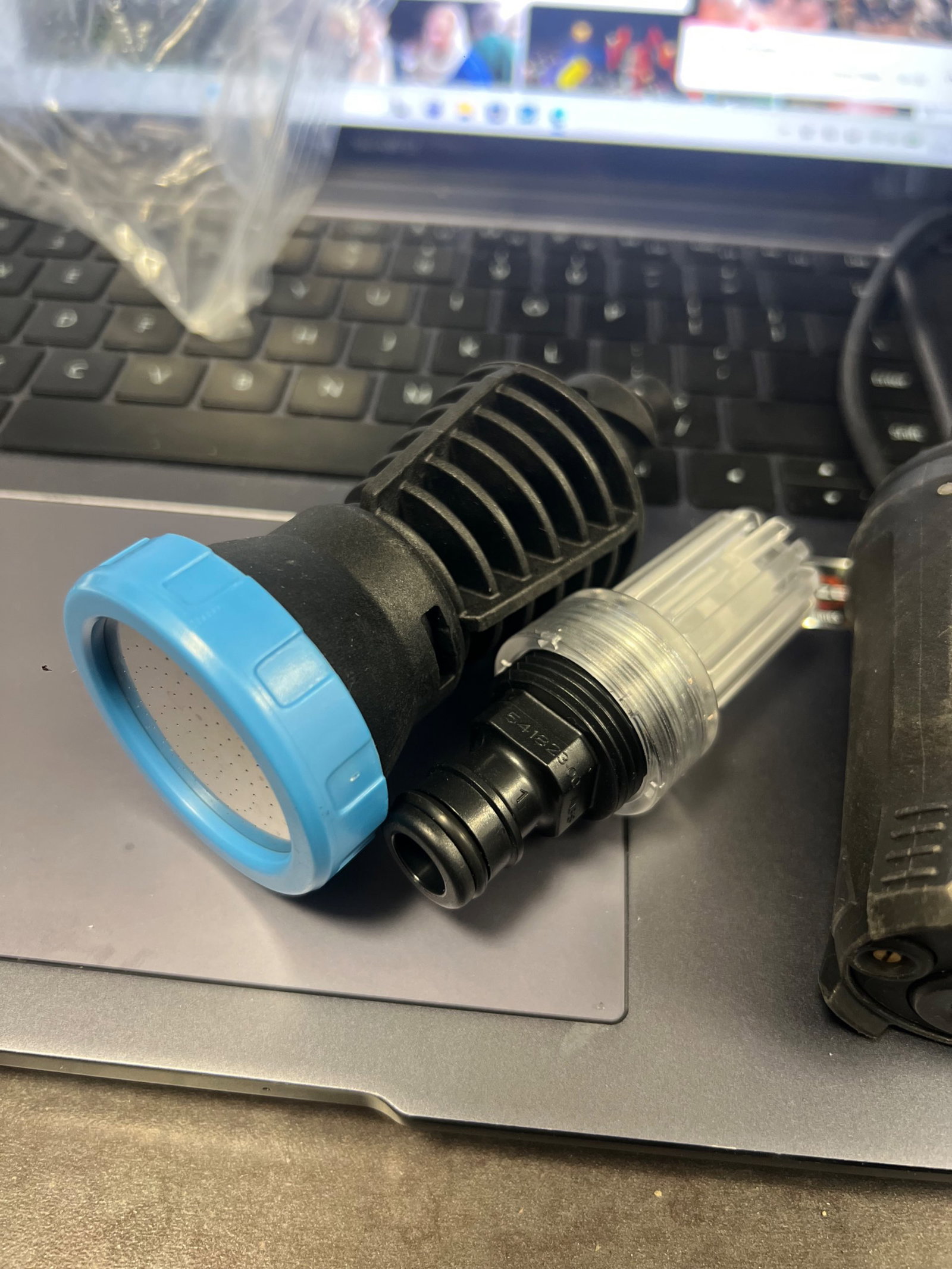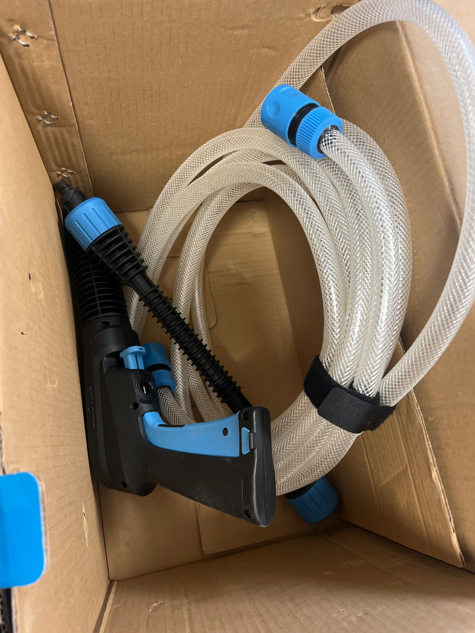 Cechy produktu: Posiada ślady użytkowania, Kompletny, Realne zdjęcia w galerii, Nietestowany. Brak możliwości sprawdzenia funkcjonalności, Myjka uruchamia się po włączeniu do prądu, ale dźwięk silnika nie brzmi czysto (możliwe, że przez brak dopływu wody)
