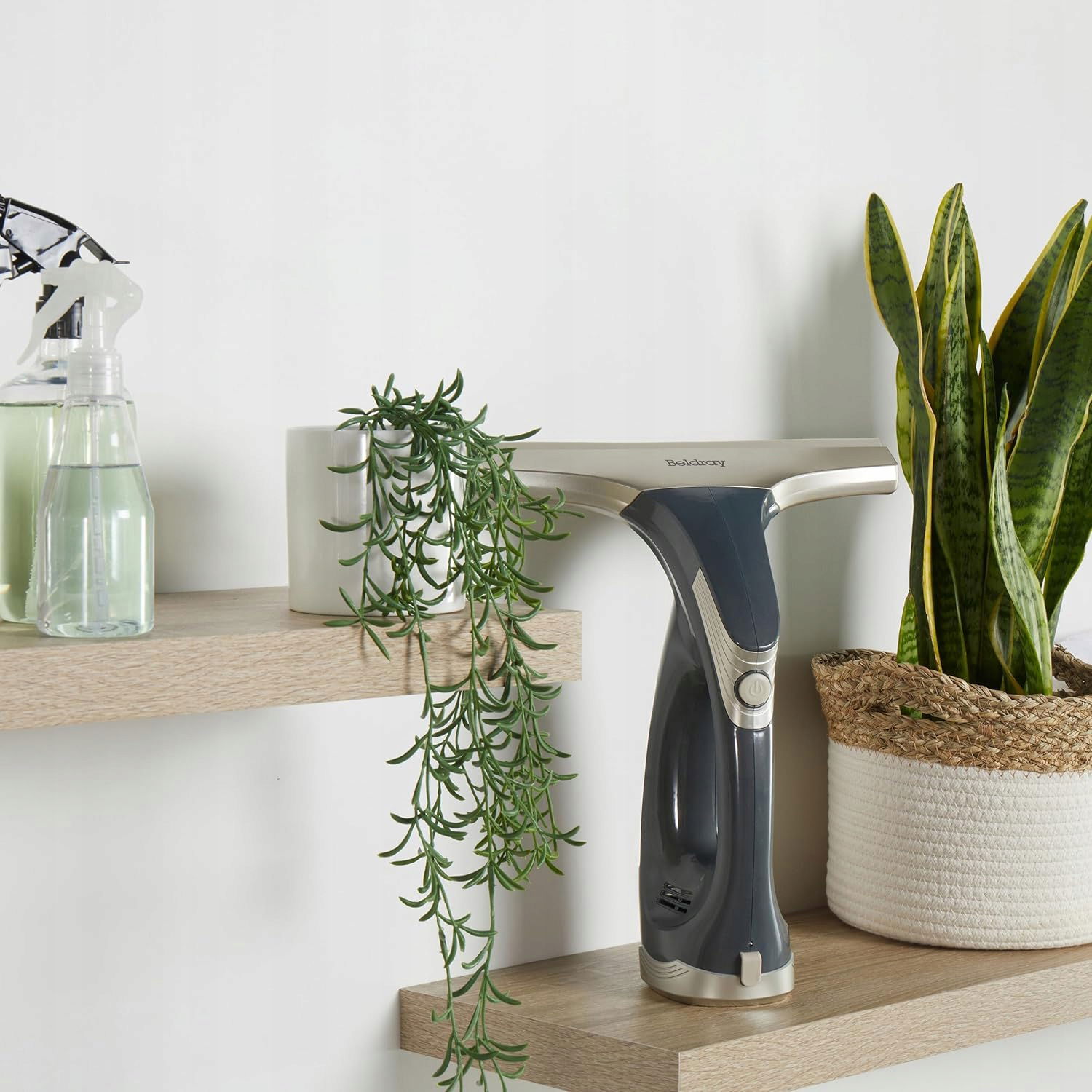 Beldray BEL0749TTVDE Titanium to bezprzewodowy odkurzacz do okien z głowicą ściągaczki, który zbiera brudną wodę do zbiornika i zostawia powierzchnie idealnie czyste – bez smug