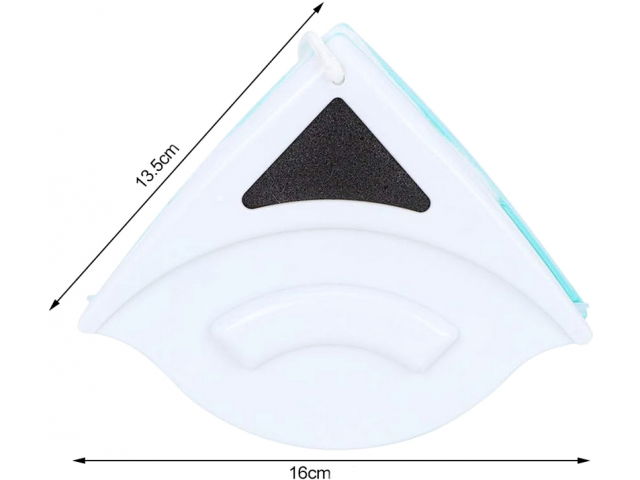 Dwustronna myjka magnetyczna do czyszczenia okien jednoszybowych. Doskonale nadaje się do mycia okien dzięki chłonnemu i niebrudzącemu wkładowi. Miękki materiał części myjącej oraz guma ściągająca nadmiar wody eliminują zacieki. Silne magnesy zapobiegają oderwaniu się obu części podczas mycia. Materiał: tworzywo sztuczne + tkanina + magnes Wymiary (myjka): 13,5 cm x 16 cm Grubość szyby: od 3 mm do 8 mm Długość ściągaczki: 15,5 cm Wymiary (wkład myjący): 7,5 cm x 7,5 cm x 10 cm Długość sznurka: 200 cm