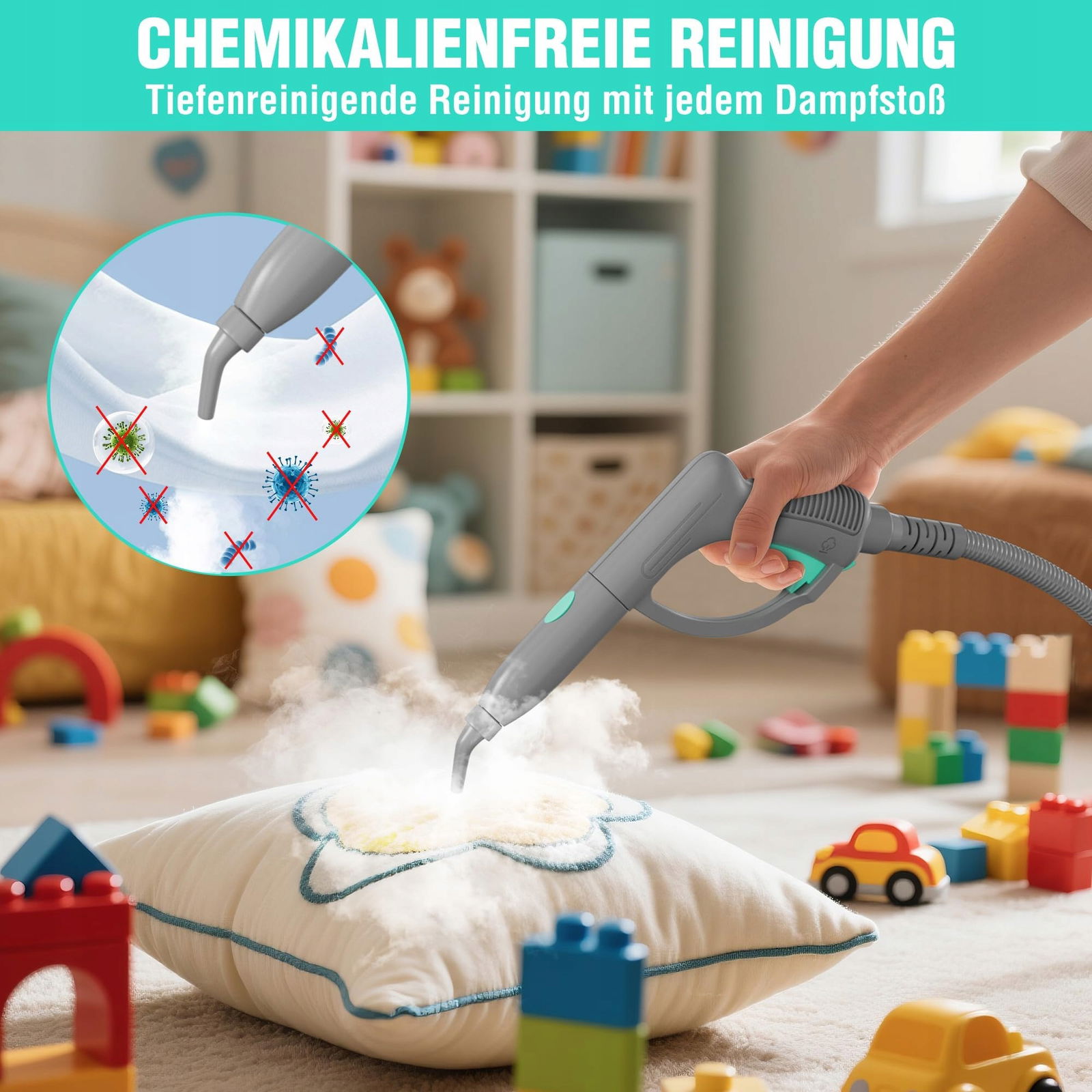 Dzięki 3-metrowemu kablowi zasilającemu oraz 90-centymetrowej rurze przedłużającej, parownica zapewnia dużą swobodę ruchów podczas czyszczenia. Blokada spustu pary pozwala na pracę ciągłą bez konieczności ciągłego naciskania przycisku. Urządzenie doskonale sprawdzi się w czyszczeniu podłóg z płytek, usuwaniu tłuszczu w kuchni, dezynfekcji armatury łazienkowej oraz czyszczeniu powierzchni szklanych. Bez trudu poradzi sobie z codziennymi zabrudzeniami oraz trudnymi plamami.
