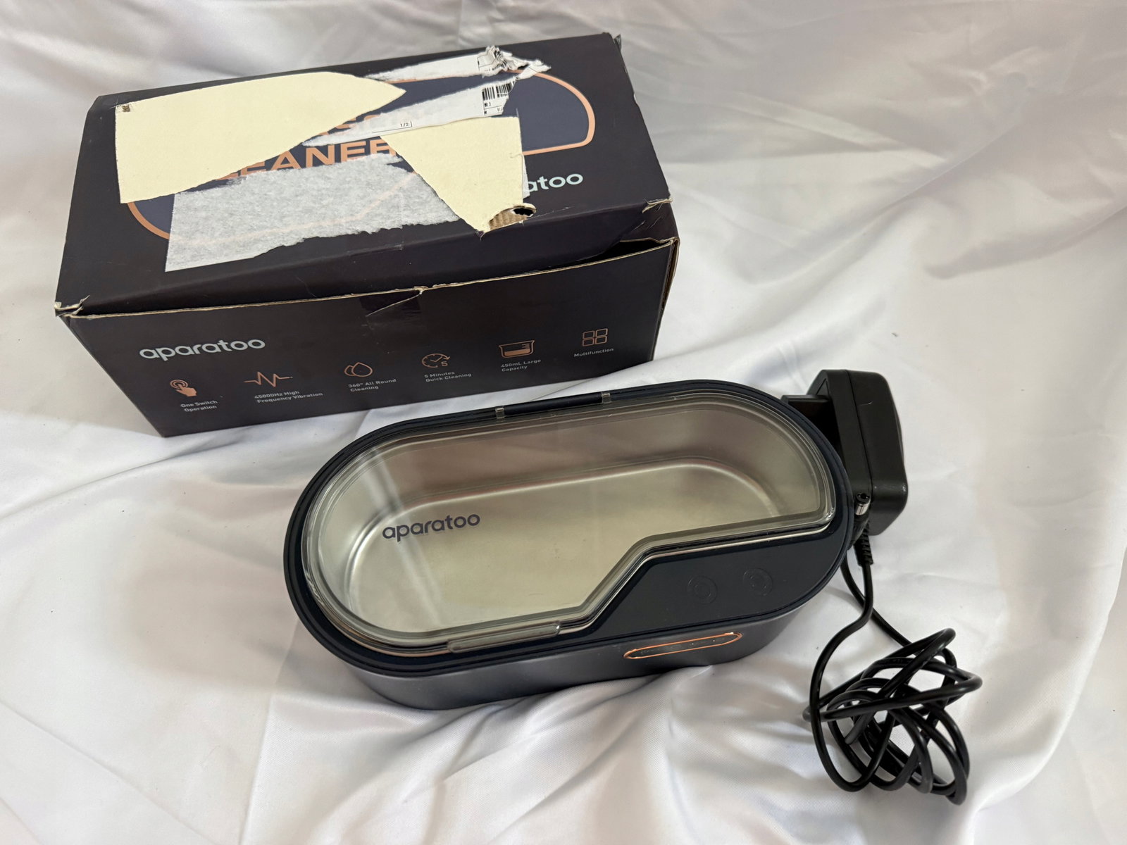 - ?【Duży zbiornik na wodę 450 ml】 Ultradźwiękowa myjka jest wyposażona w higieniczny zbiornik ze stali nierdzewnej o pojemności 450 ml i wysokowydajny przetwornik ultradźwiękowy i może mieć dostęp do doskonałych efektów czyszczenia. Przezroczysta pokrywa jest zamocowana, dzięki czemu załadunek i rozładunek urządzenia jest bardzo łatwy i można obserwować działanie czyszczenia.