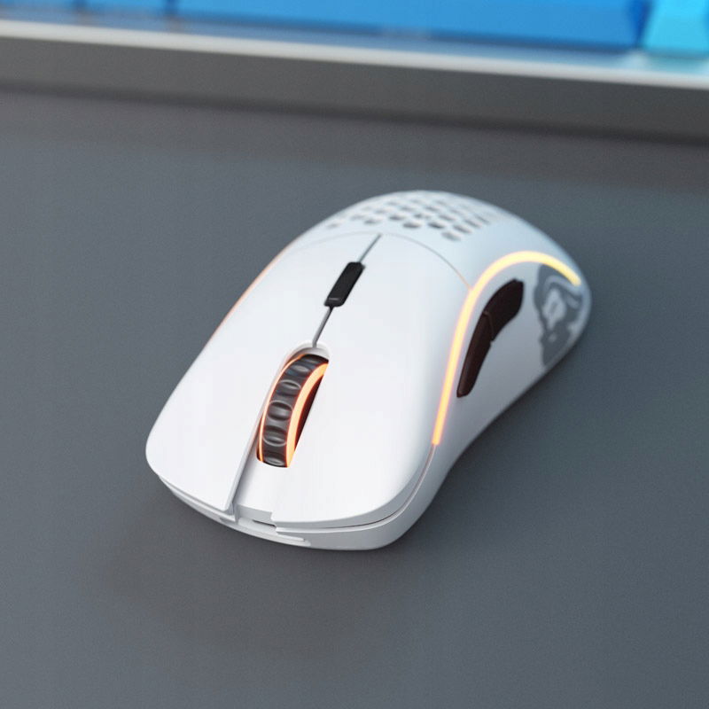 Glorious Model D to mysz z sześcioma programowalnymi przyciskami. Dzięki niskiej wadze, najwyższej klasy sensorowi optycznemu i wysokiej jakości wykonania mysz zadowoli nawet najbardziej wymagających graczy. Stylowa konstrukcja plastra miodu poza obniżeniem wagi zapewnia również lepsze chłodzenie dłoni, a w połączeniu ze zintegrowanym oświetleniem RGB przyciąga wzrok.
