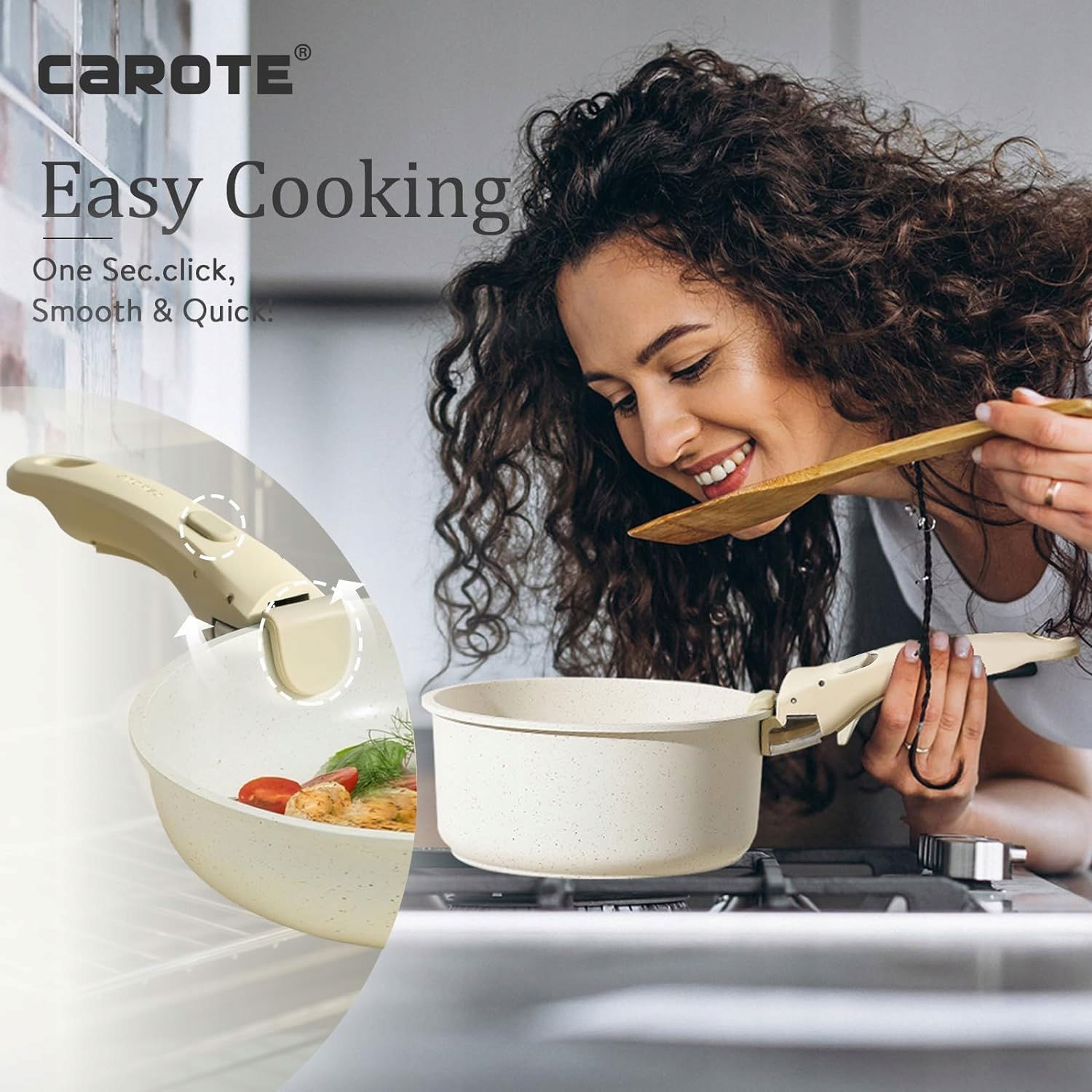 Wszechstronność zastosowania dzięki zdejmowanemu uchwytowi. Zestaw jest idealny do gotowania, pieczenia i przechowywania kulinariów. Ułatwia przechowywanie, oszczędzając do 70% miejsca.