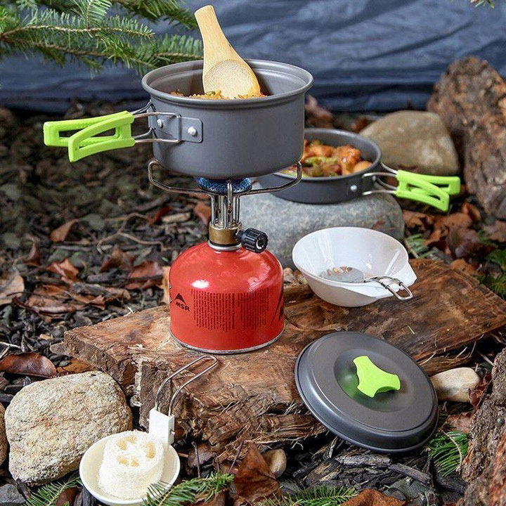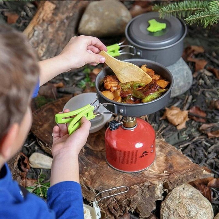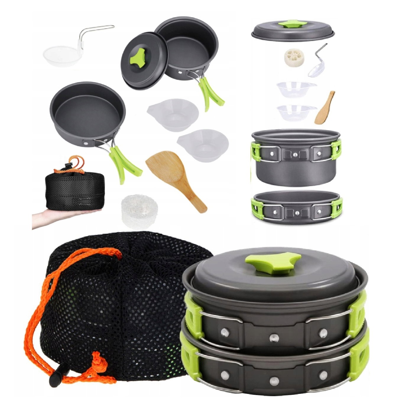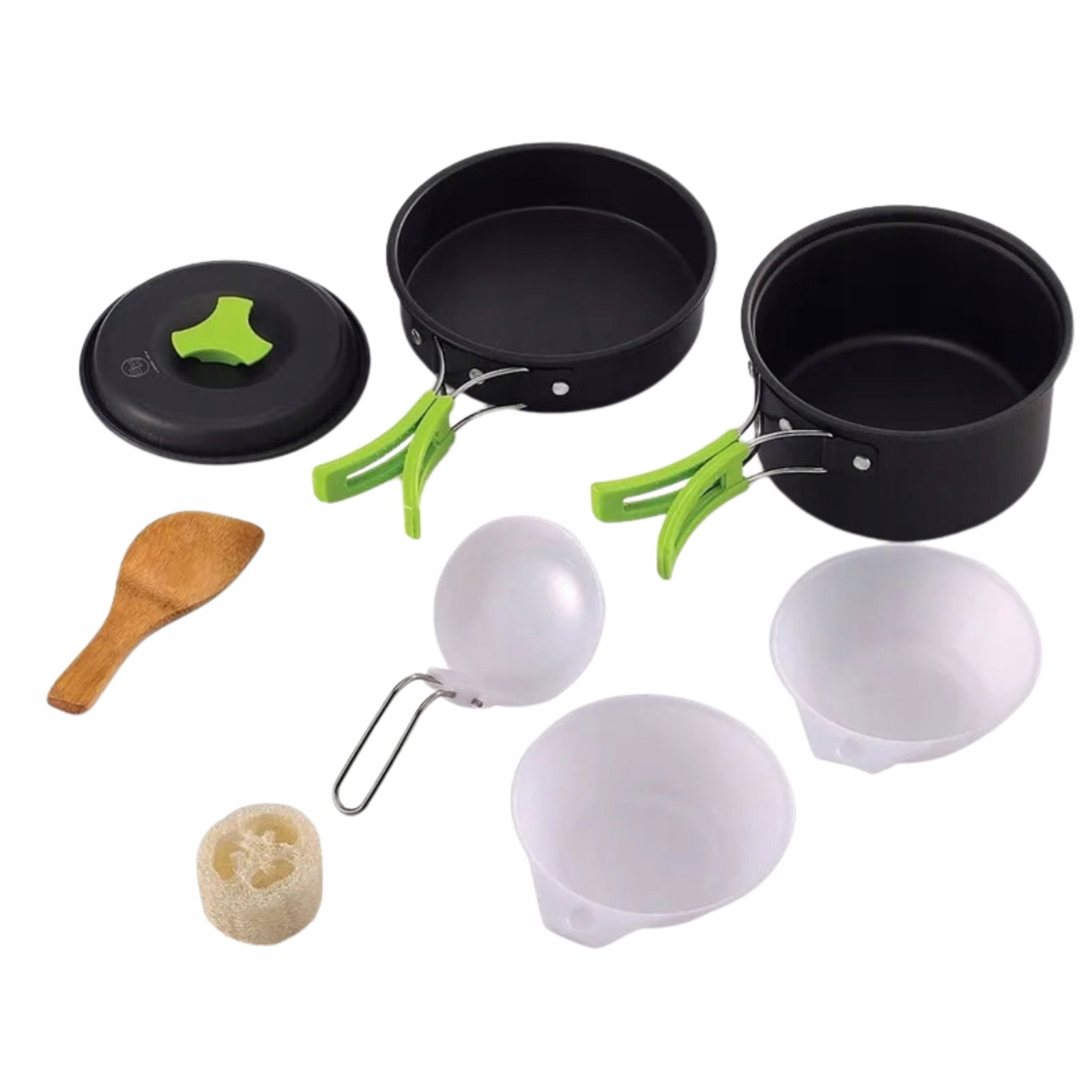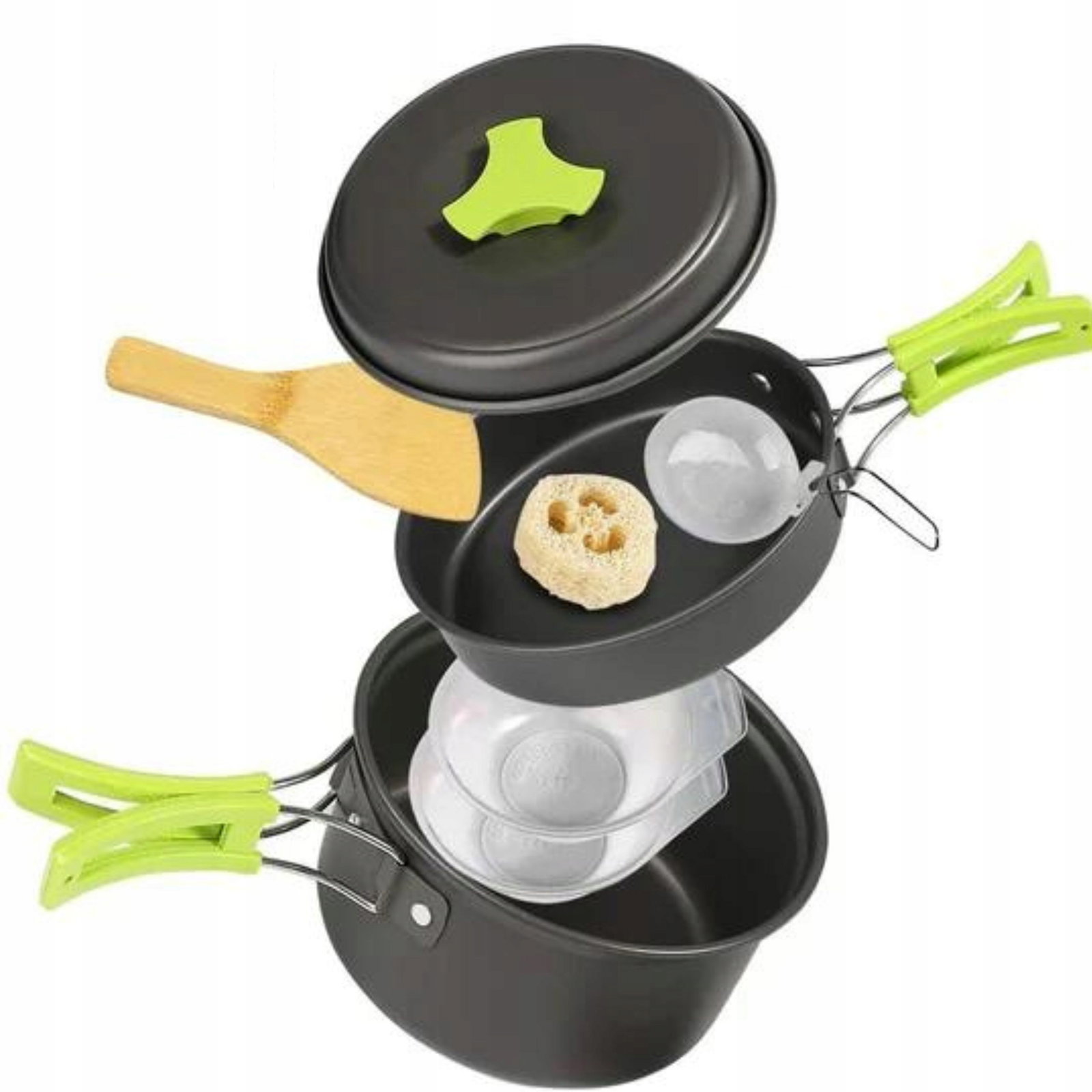 - Kompletny zestaw naczyń turystycznych składający się aż z 9 elementów.