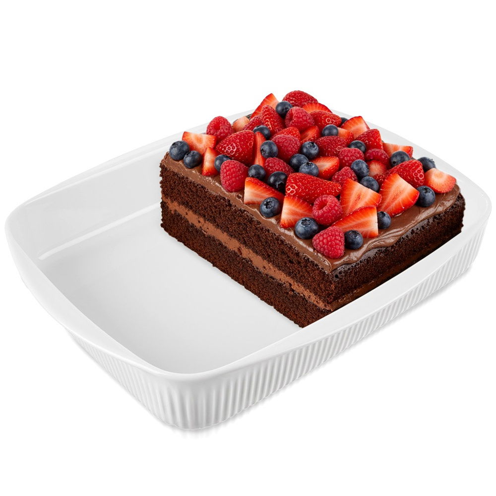 Idealne do zapiekania i deserów - Naczynie może służyć do zapiekania mięsa, lasagne, ziemniaków, pieczonych warzyw, zapiekanek oraz innych potraw. Świetnie sprawdzi się również do pieczenia ciast. Potrawy możemy w niej serwować bezpośrednio na stole.