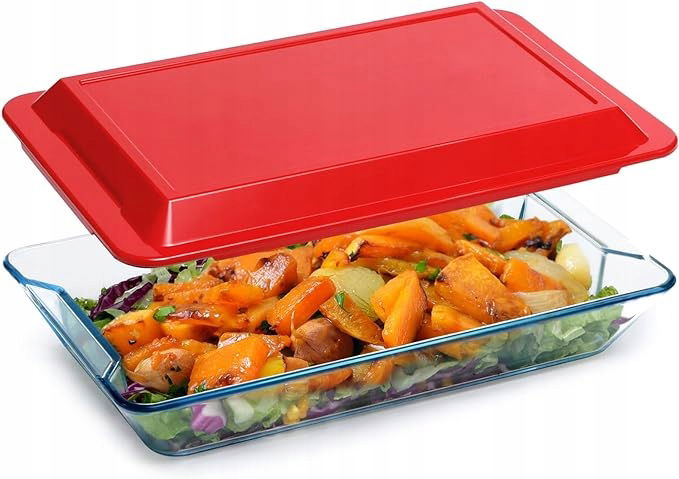 Szklane naczynie do pieczenia z pokrywką,naczynie żaroodporne 4QT prostokątne,szklana forma do pieczenia naczynie do pieczenia