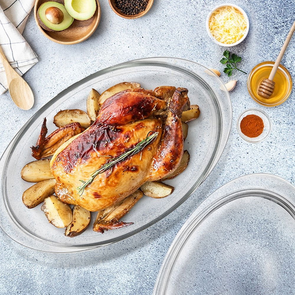 Naczynie Żaroodporne Szklane Brytfanna Brytfanka Pokrywka do Pieczenia 3L