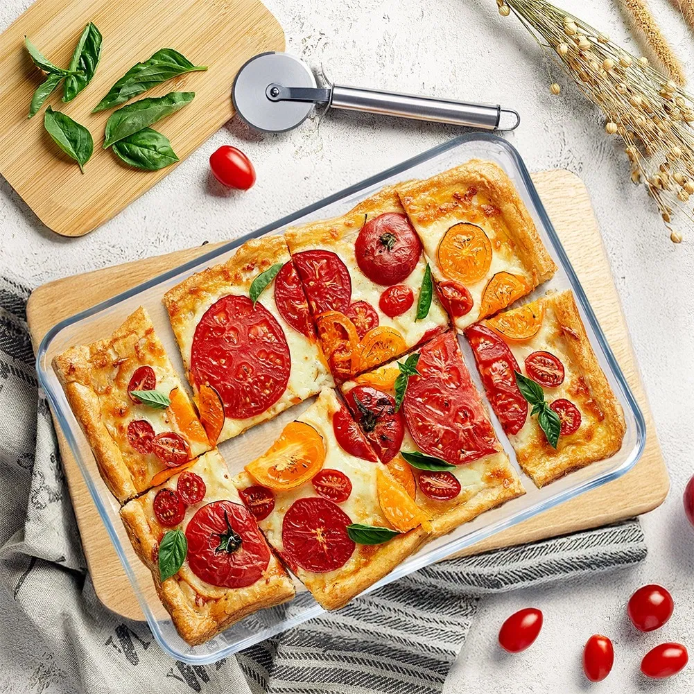 Świetnie sprawdzi się do serwowania - Taca świetnie sprawdzi się nie tylko do przygotowywania dań w piekarniku, ale również do ich estetycznego serwowania bezpośrednio na stół. Szklana forma prezentuje się elegancko, dzięki czemu podane w niej dania wyglądają apetycznie i atrakcyjnie.