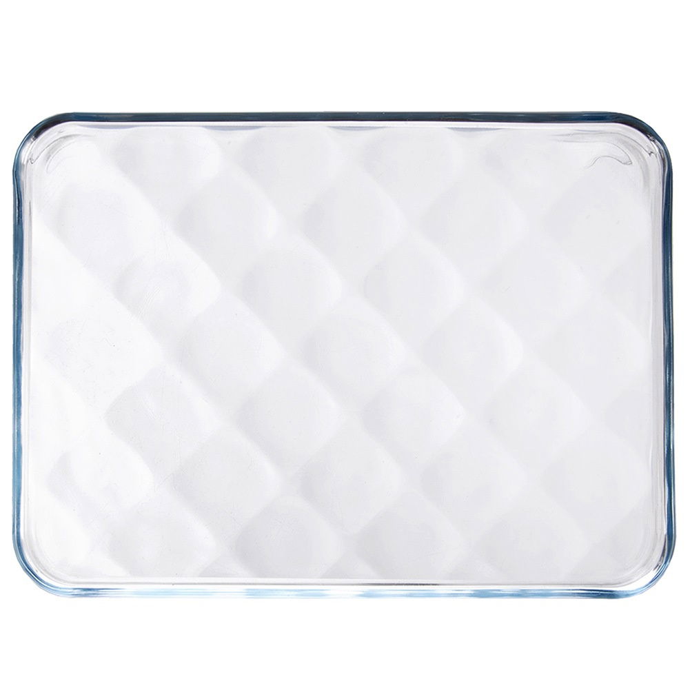 Naczynie żaroodporne - Praktyczne naczynie żaroodporne do pieczenia i serwowania w formie tacy o wymiarach 33,5 x 24,5 x 2 cm. Powierzchnia tacy posiada dekoracyjne tłoczenie w formie delikatnych rombów. Struktura ta nadaje jej elegancki wygląd, a jednocześnie, zapobiega przywieraniu potraw.