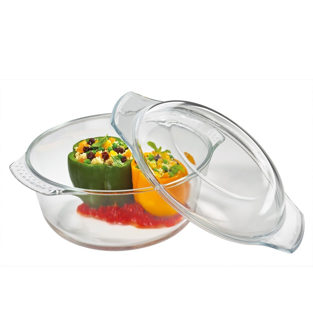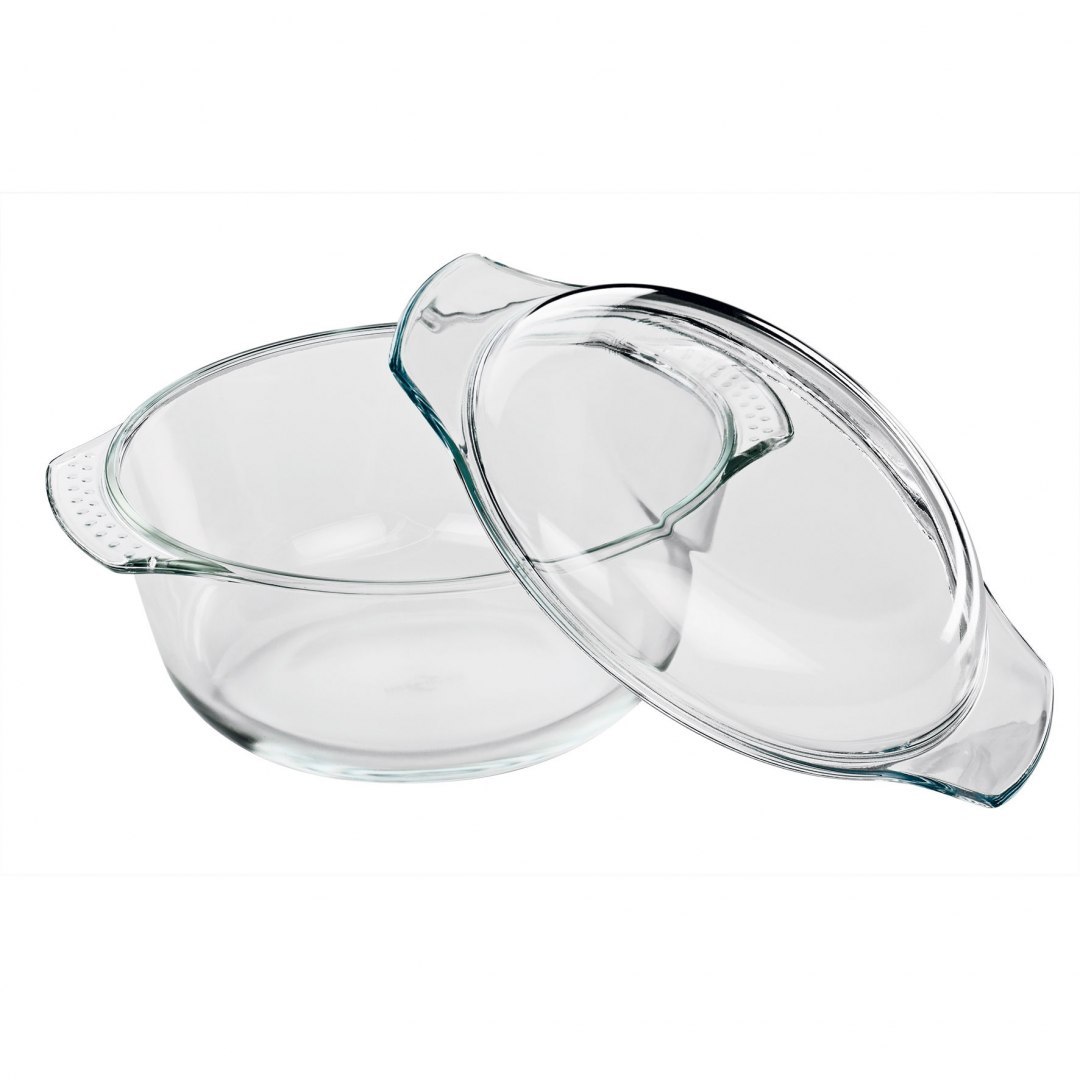 Naczynie żaroodporne z pokrywką, szkło borokrzemowe, śred. 22 x 13,5 cm