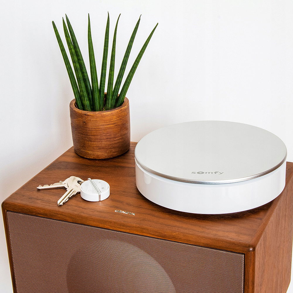 Komfortowe uzbrajanie i rozbrajanie alarmu Key Fob klucz zbliżeniowy pozwala bez użycia rąk uzbroić lub rozbroić alarm. Somfy Home Alarm rozpoznaje użytkownika na podstawie klucza zbliżeniowego. Można go w bardzo łatwy sposób przyczepić do kluczy, a w momencie zagrożenia może również służyć jako przycisk antynapadowy.
