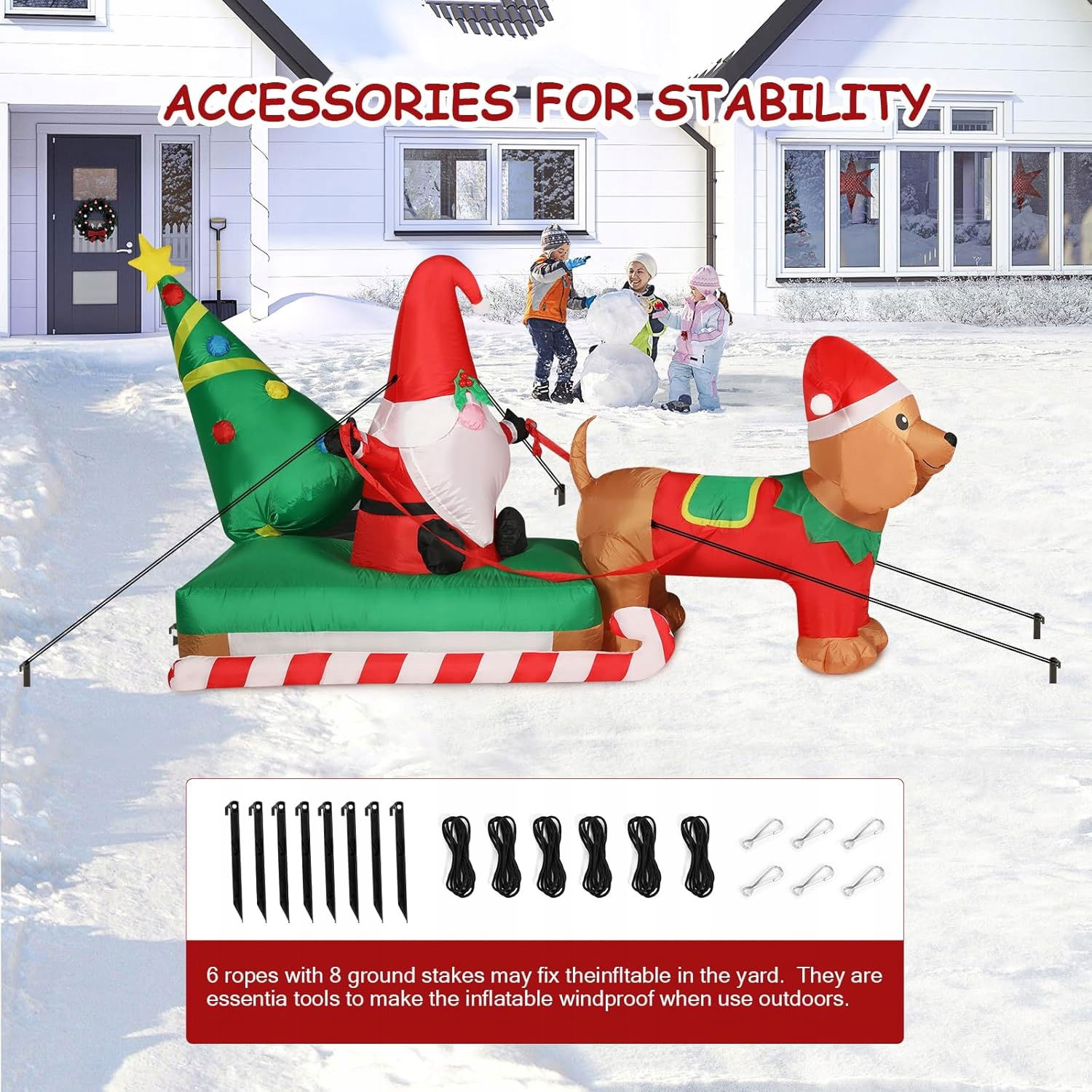 - ? Łatwa instalacja i przechowywanie - Dzięki łatwej instalacji i wydajnemu nadmuchiwaniu i spuszczaniu powietrza, ten gigantyczny dmuchany świąteczny namiot jest prosty w przechowywaniu i transporcie. Składa się kompaktowo i można go przechowywać w pudełku. Aby zapewnić stabilność, należy używać worków na wodę i kołków zgodnie z instrukcją, szczególnie w wietrzne dni.
