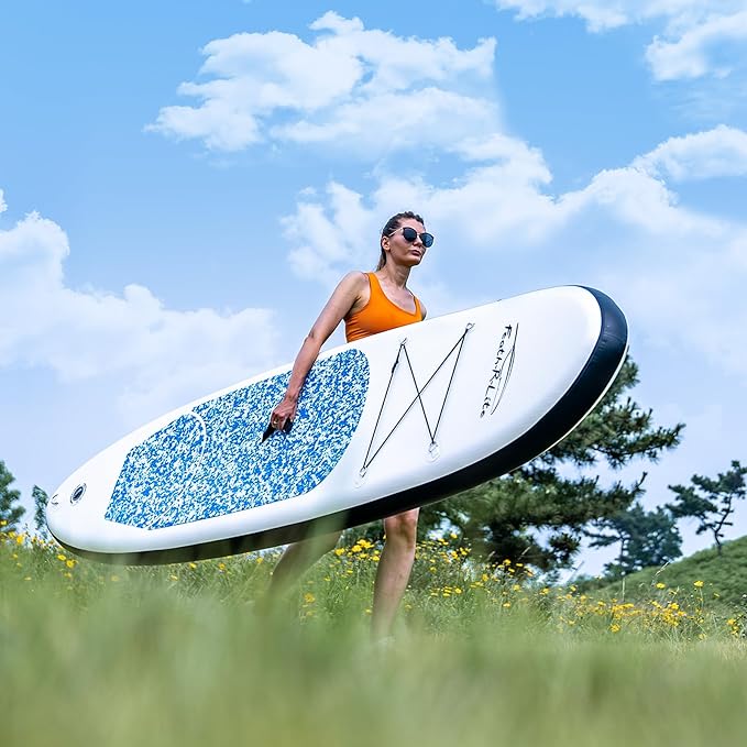 Deska SUP nadaje się do wiosłowania, jogi, zwiedzania, wędkowania, surfowania po wodzie. Dzięki zaktualizowanym D-ringom, bezpiecznemu paskowi, przestrzeni ładunkowej i wysokiej jakości akcesoriom, nasza nadmuchiwana deska SUP jest na każde warunki.
