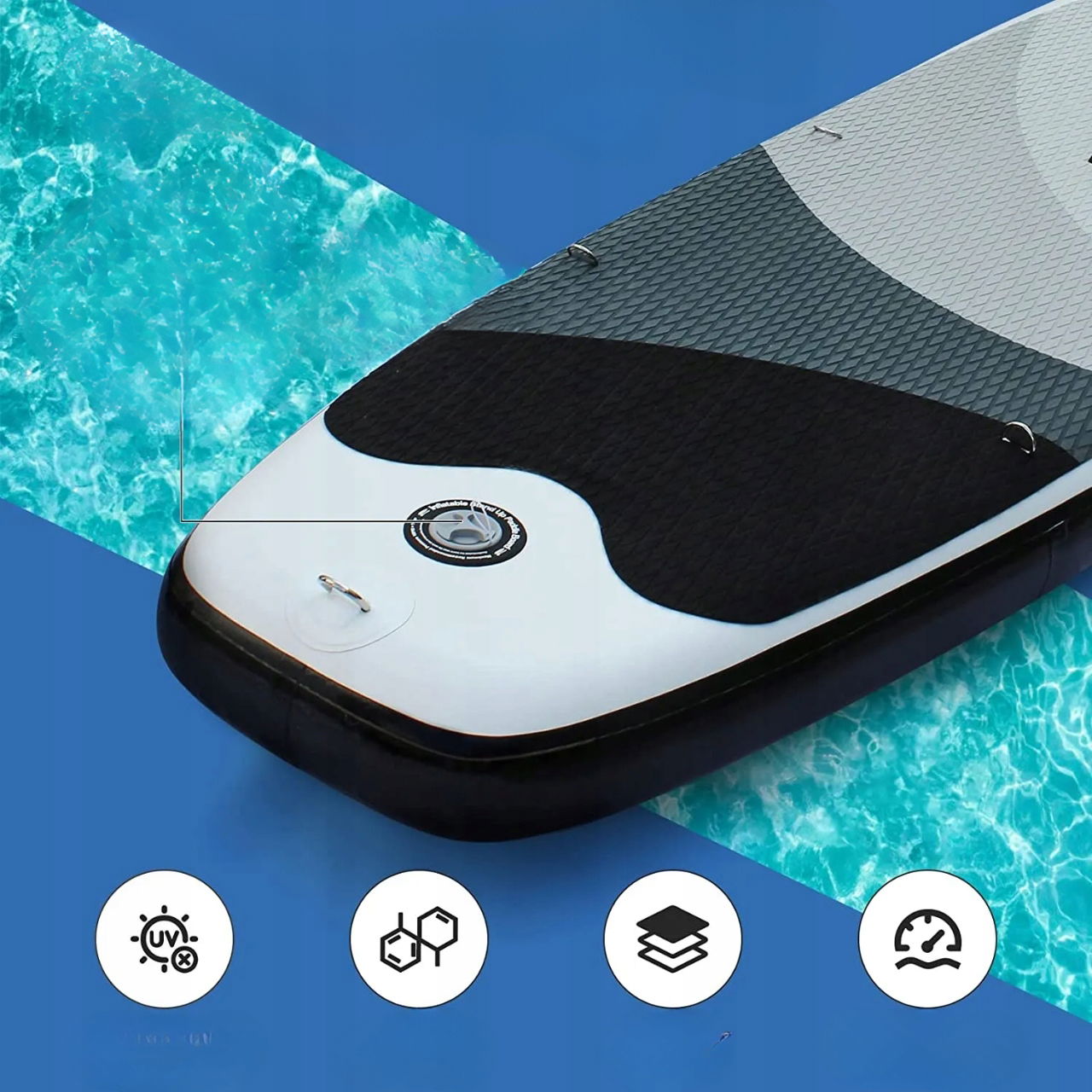 Poznaj wszechstronną deskę do paddleboardingu z siedziskiem, idealną dla dorosłych, dzieci i początkujących miłośników wodnych aktywności. Wyjątkowo stabilna, nośność do 200 kg, w zestawie z pełnym wyposażeniem – gotowa do zabawy już po kilku minutach!
