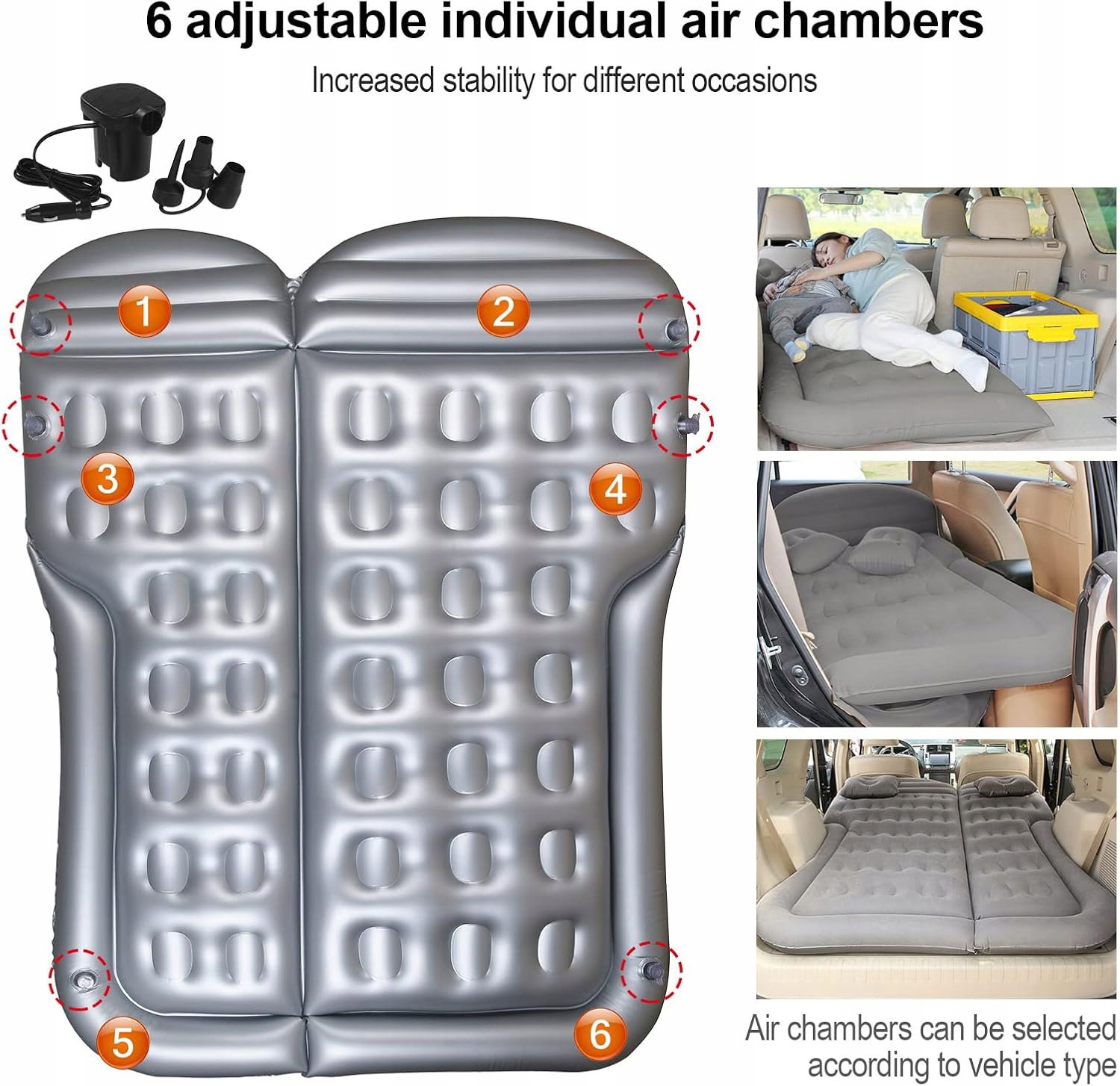 Materac dmuchany Vinteky, nadmuchiwany materac samochodowy, łóżko samochodowe z elektryczną pompką powietrza i 2 poduszkami, uniwersalny fotelik samochodowy do bagażnika i SUV-a, kemping, podróż, na zewnątrz, 175 cm x 130 cm,