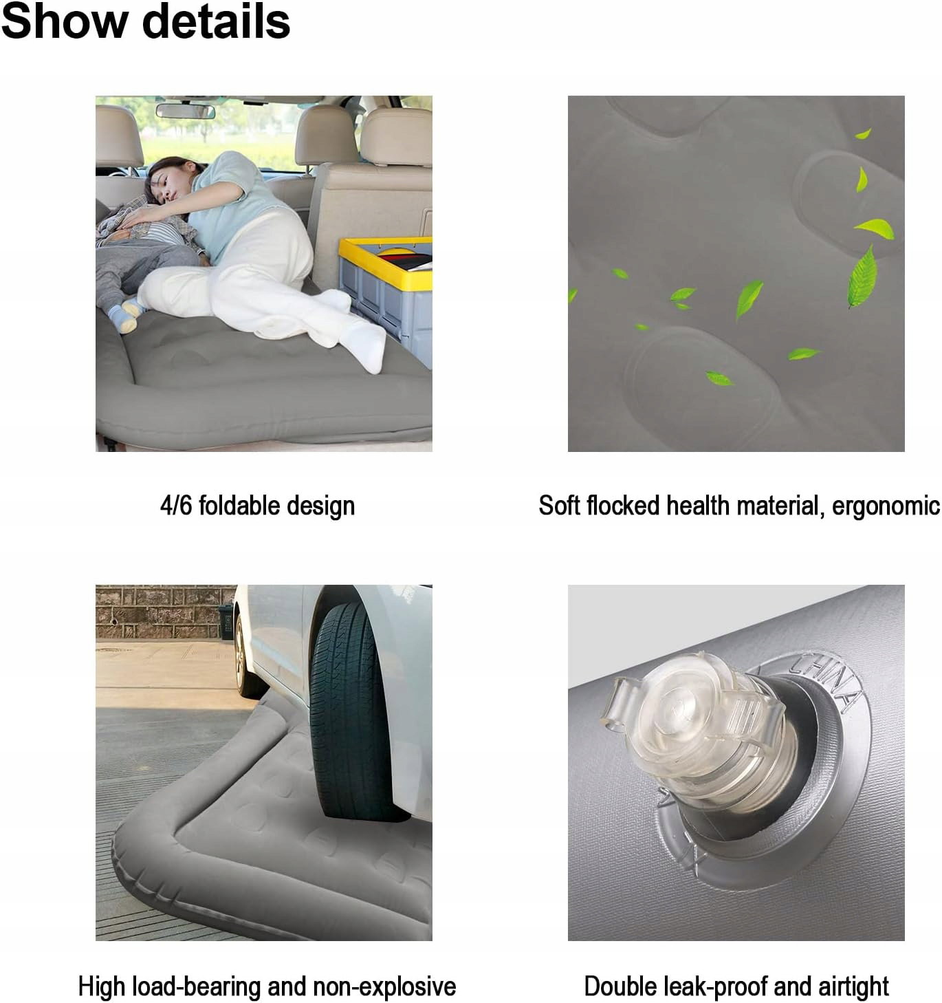 - Wielofunkcyjny: dzięki idealnemu rozmiarowi ten dmuchany materac powietrzny nie tylko nadaje się do bagażnika samochodu, ale także na tylne siedzenie samochodu, a nawet idealnie nadaje się do użytku na zewnątrz na podłodze, idealny na długie podróże, kemping, wędrówki i inne zastosowania wewnątrz i na zewnątrz, można go również wykorzystać jako poduszkę na sofę, gdy przeprowadzasz się do nowego domu lub wynajmujesz mieszkanie.