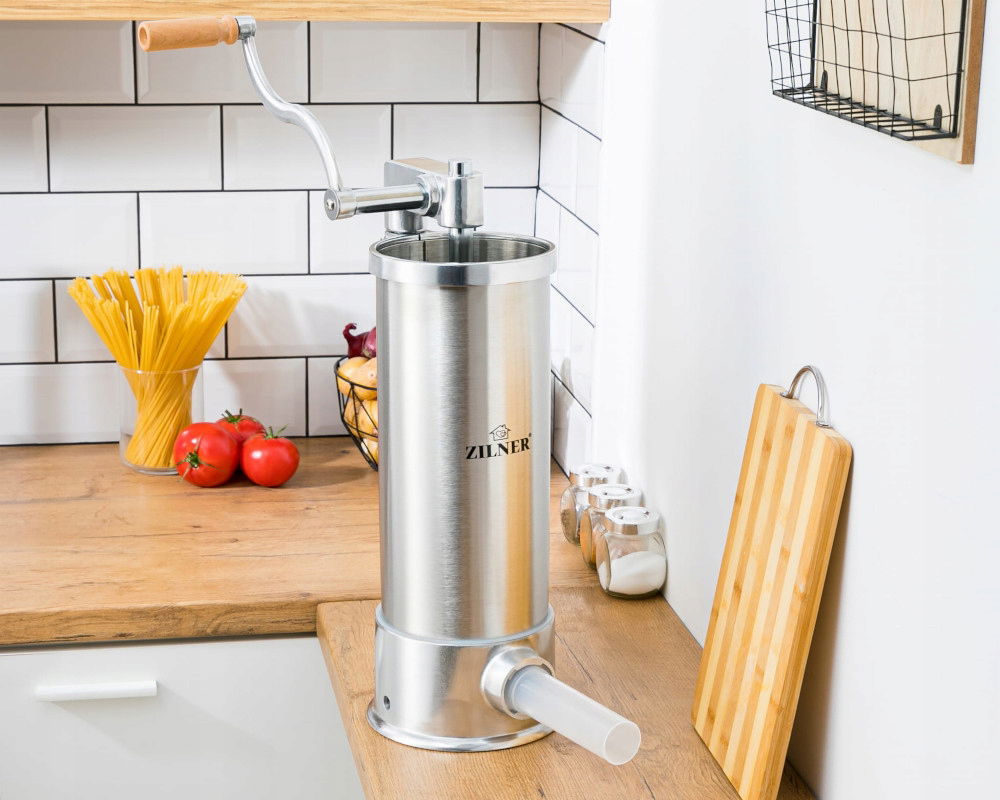 Nadziewarka do mięsa to niezawodne urządzenie, z którym z łatwością przyrządzimy domowe kiełbasy, kaszanki i pasztety. Służy do napełniania jelit dowolnym farszem, zazwyczaj mieszaniną mięsa, tłuszczu, wody oraz przypraw. Zapewnia bezpieczne i komfortowe nadziewanie, a także jest prosta w utrzymaniu czystości.