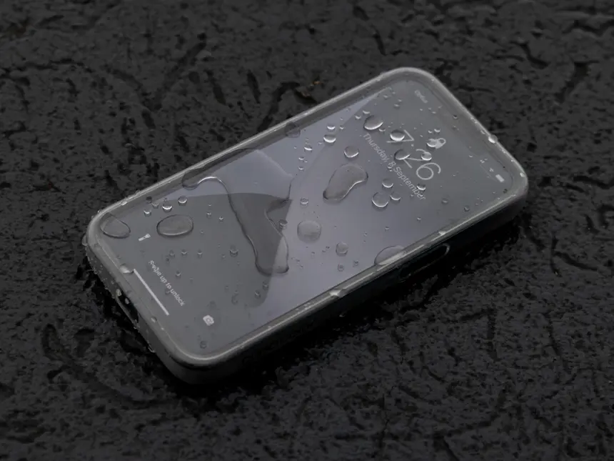 Zabezpiecz swój telefon przed deszczem, błotem i kurzem dzięki nakładce przeciwdeszczowej Quad Lock.