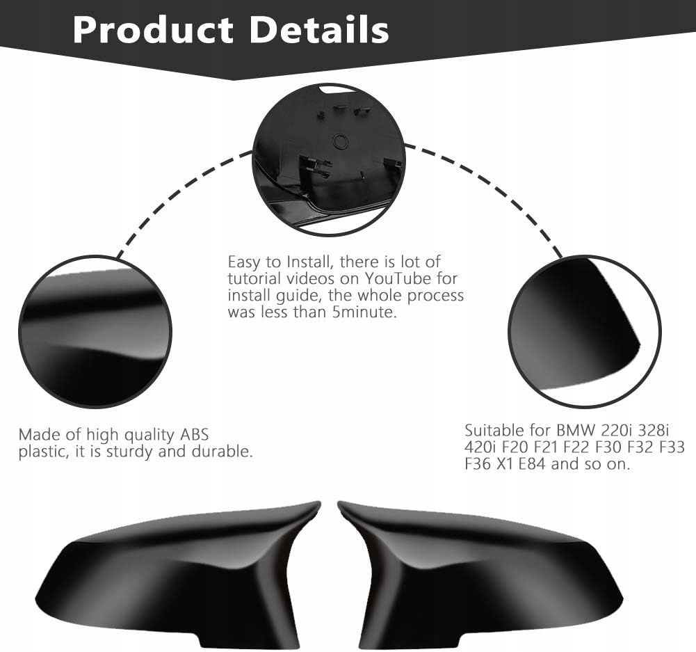 - Doskonała kompatybilność – osłona lusterka bocznego jest idealna do serii 1 F20 F21 116i 118i 120i 125i 130i Hatchback 2012-2016; do serii 2 F22 F23 218i 220i 228i Coupe & Cabrio 2014-onowy. ; do 3 Seria F30 F31 320i 328i 330i 335i Sedan & Touring 2012-on; do serii 4 F32 F33 F36 420i 428i 435i Coupe & Cabrio i Gran Coupe 2014-on; do serii X X1 E. 84 20 13-2015; do serii M F87 M2 2014-on.