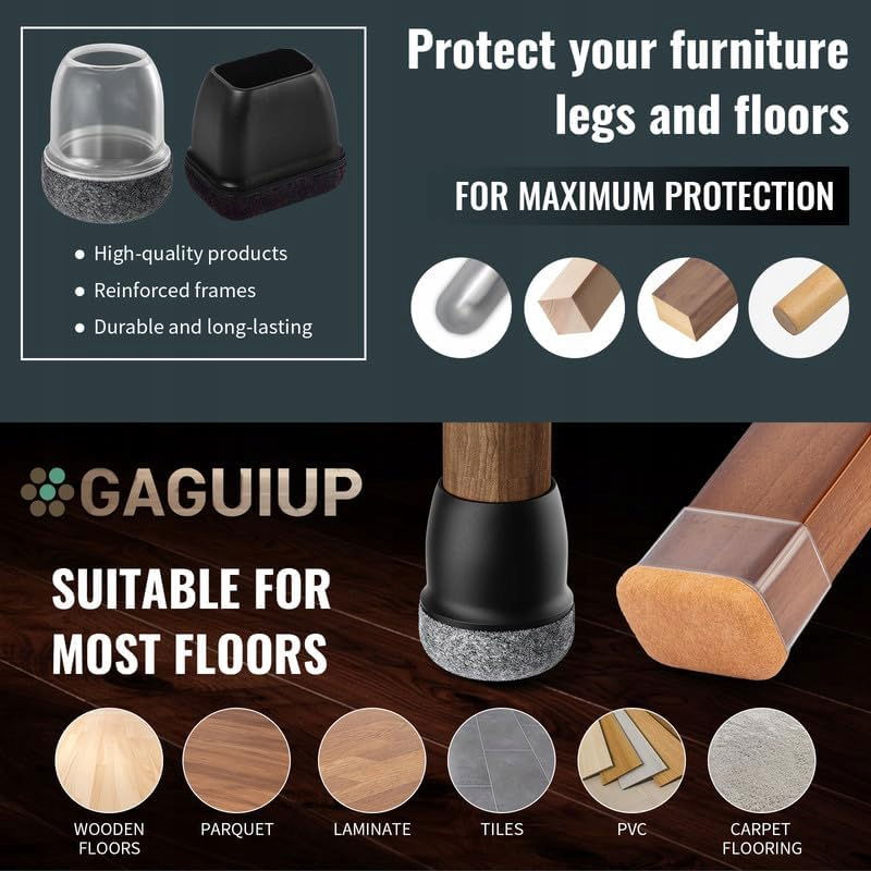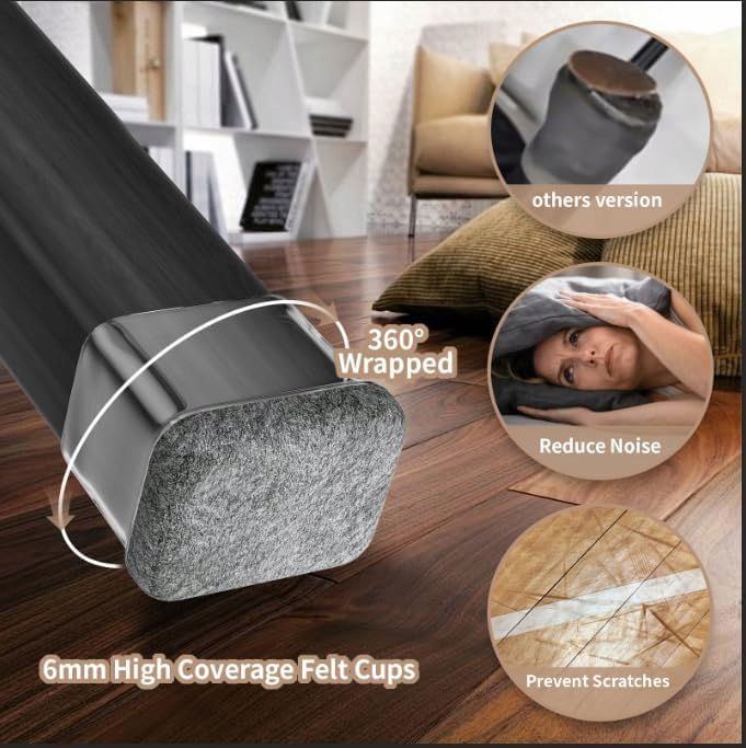 - 【Zapobieganie zarysowaniom i redukcja hałasu】: filc bazowy naszych ochraniaczy na nogi krzeseł ma większy obszar pokrycia niż inne produkty dostępne na rynku, może być stosowany na skośnych nogach mebli i może lepiej chronić podłogę. Nasze nakładki ochronne na nogi krzesła mogą łatwo przesuwać ciężkie meble i zmniejszyć hałas.