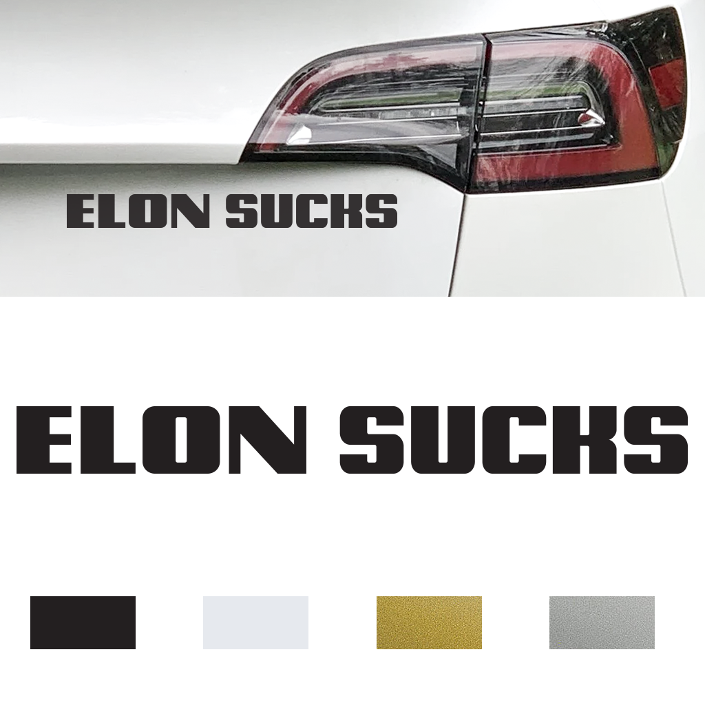 Naklejka ELON SUCK anty Musk anti Trump Tesla na auto bez tła od GravArt