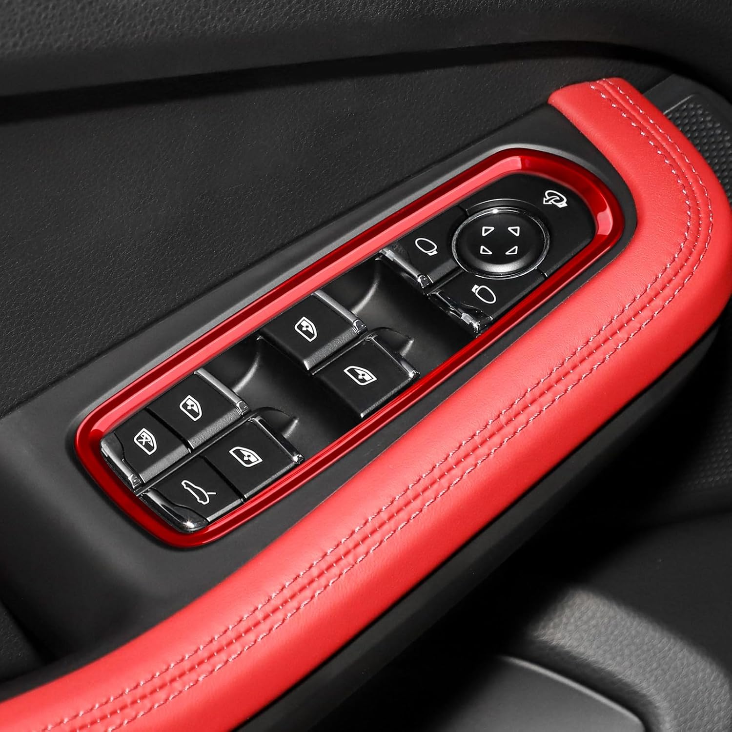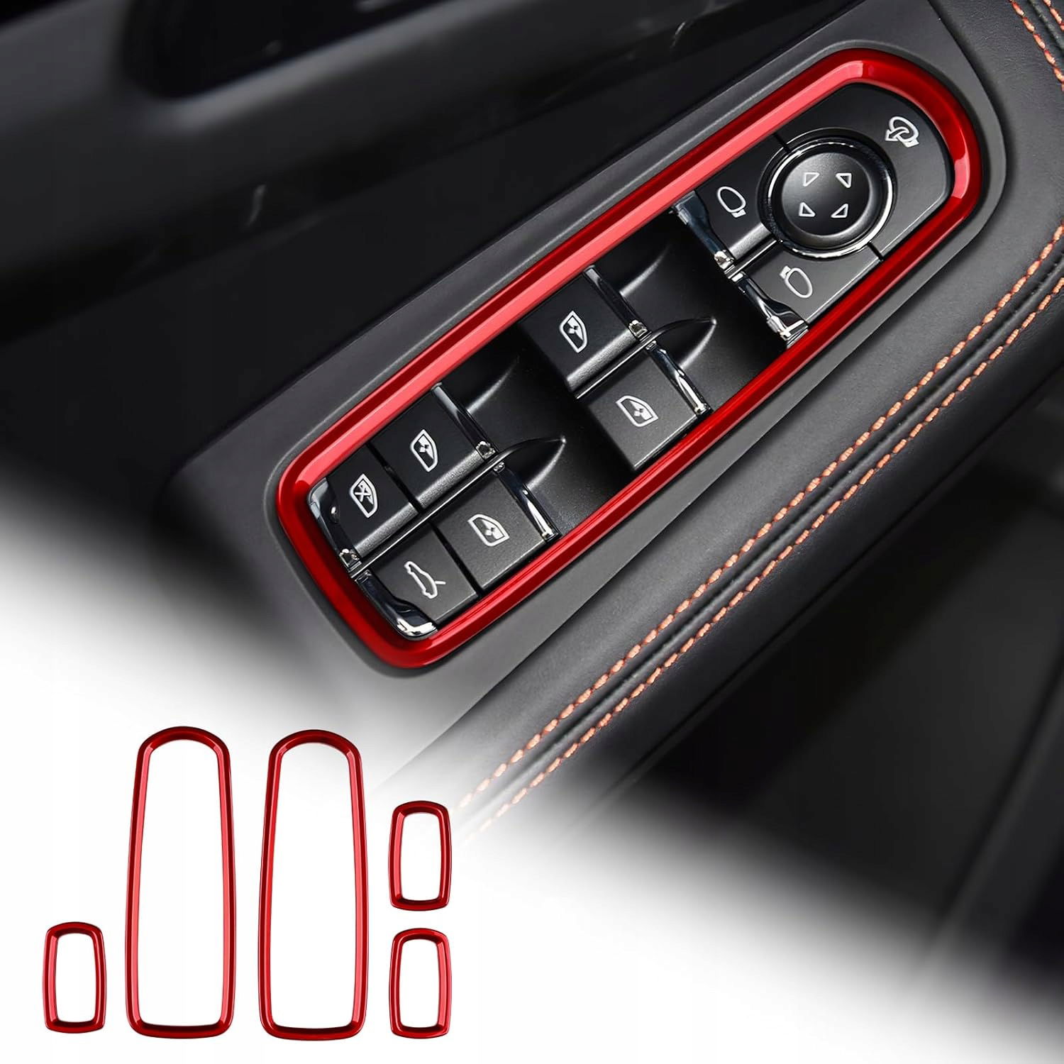 Naklejka dekoracyjna na ramkę przełącznika podnoszenia szyby samochodowej, osłonę panelu, akcesoria wewnętrzne do Porsche Cayenne 2011 2012 2013 2014 2015 2016 2017, 5 szt. (czerwona)