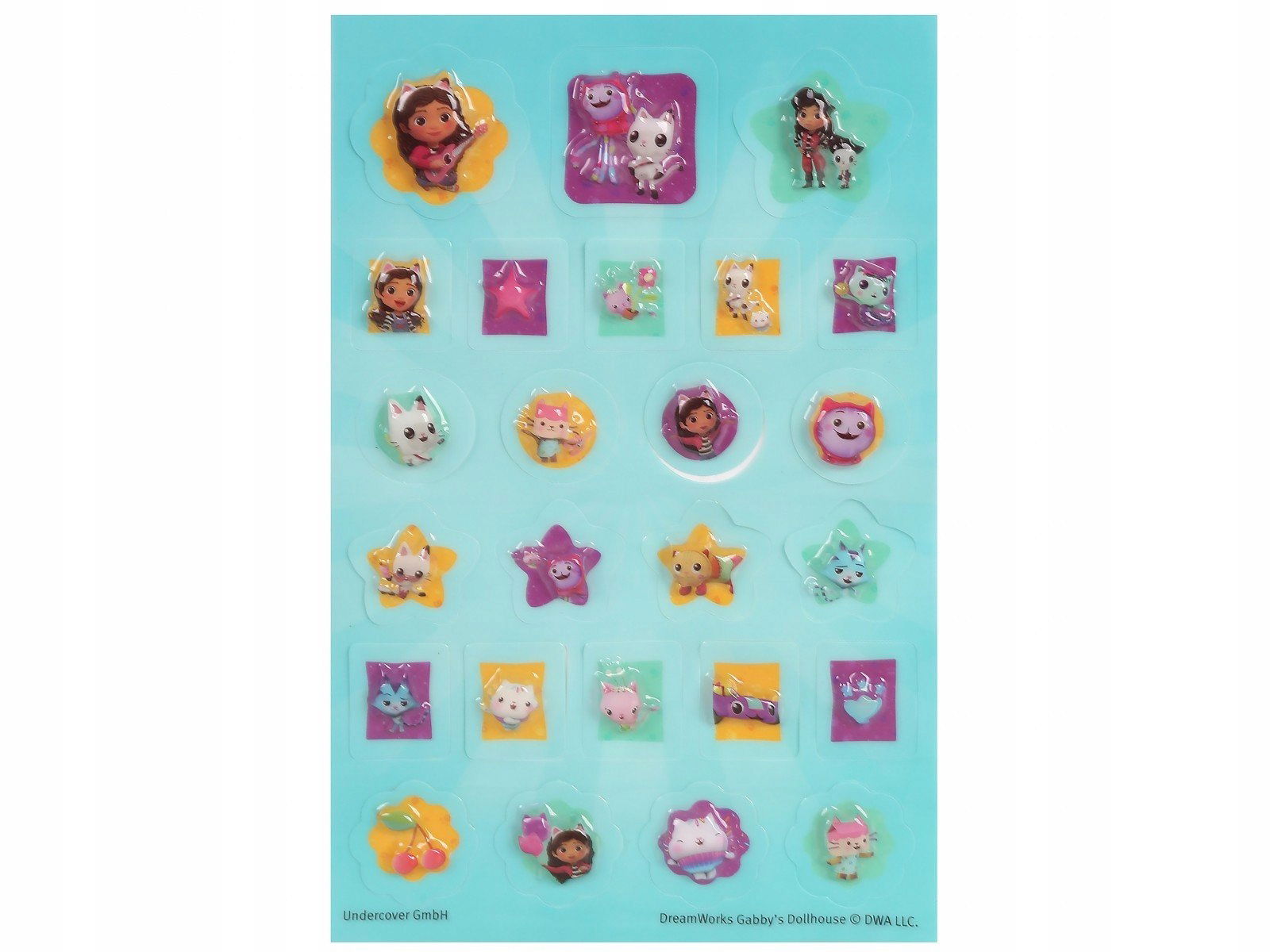 - Bohaterowie z Koci Domek Gabi – Każda naklejka przedstawia ulubione postaci z bajki, co sprawia, że dzieci chętniej sięgną po nie do zabawy i dekorowania.