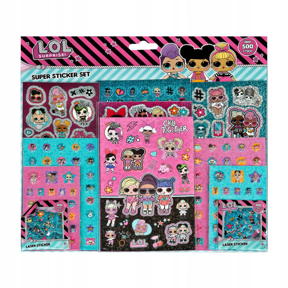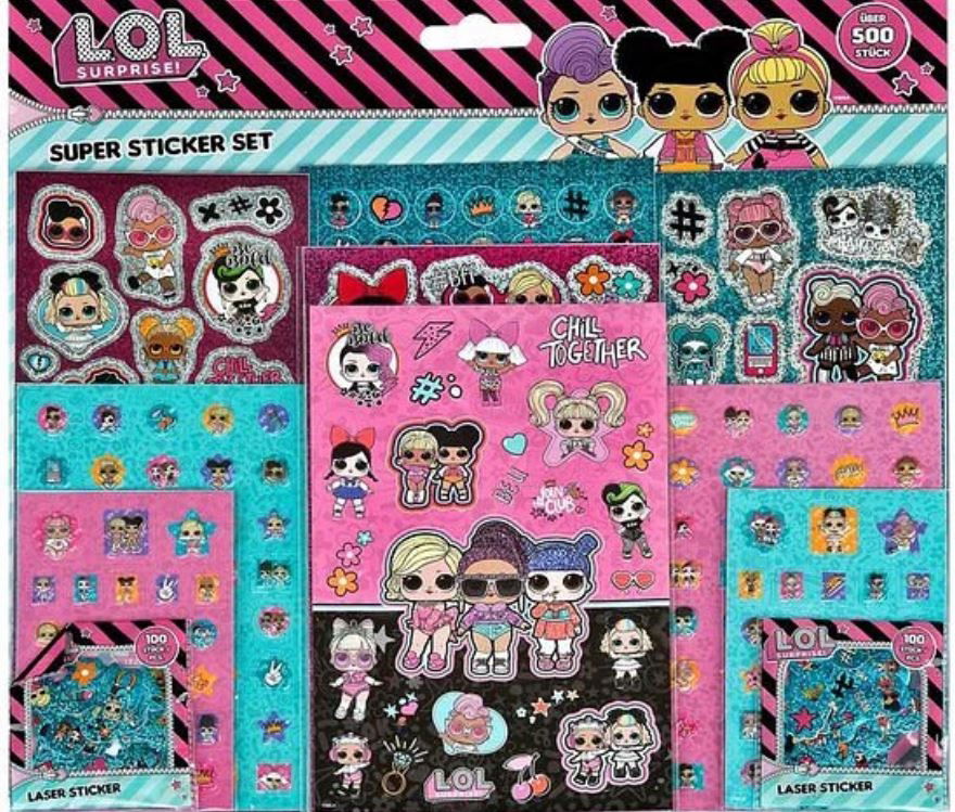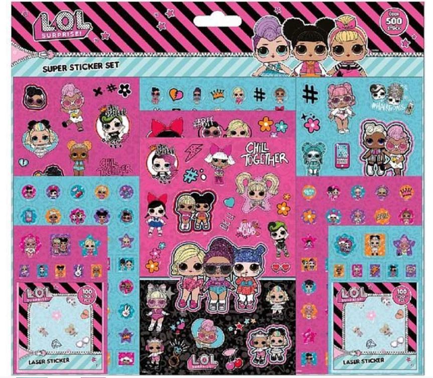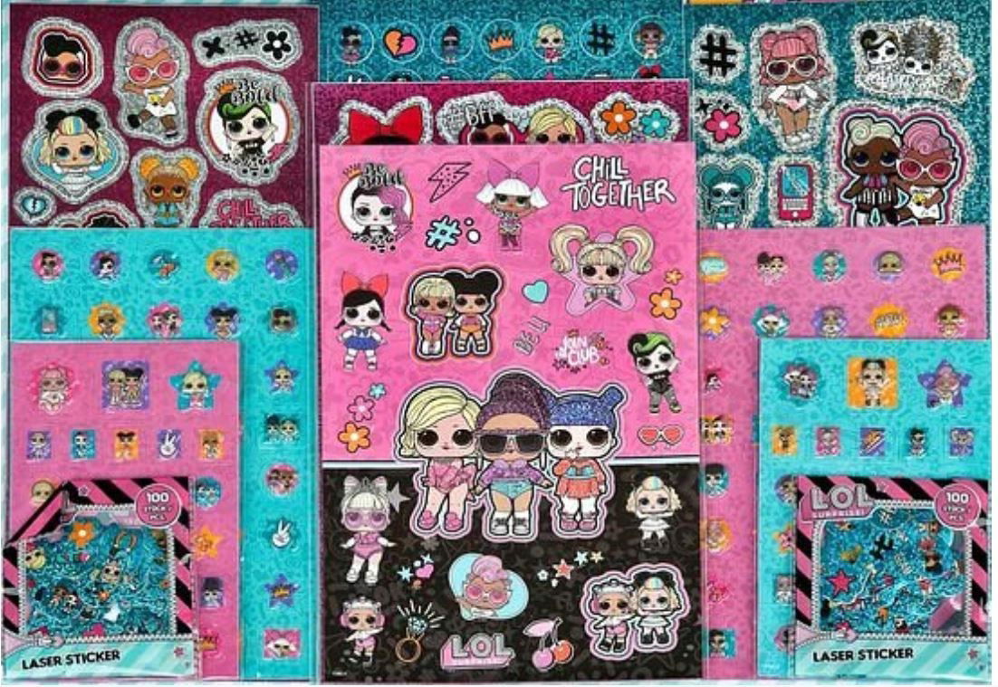 NAKLEJKI DLA DZIECI Zestaw LOL Surprise 500 sztuk KOLOROWE SAMOPRZYLEPNE