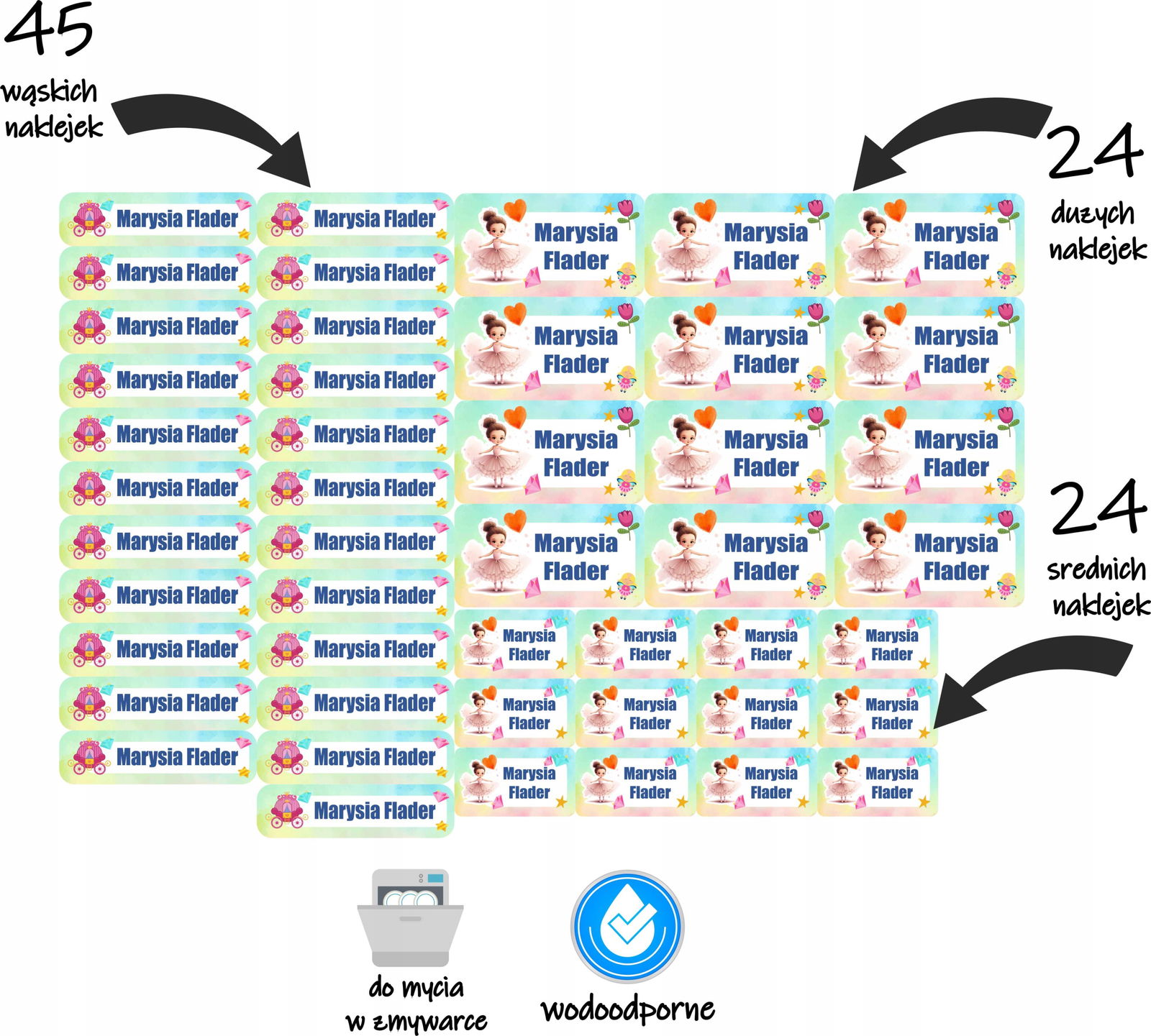 NAKLEJKI PERSONALIZOWANE Z FOLII SAMOPRZYLEPNEJ DLA DZIECI DO SZKOŁY I PRZEDSZKOLA 90szt