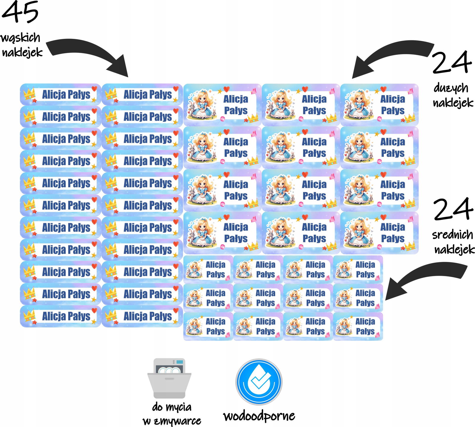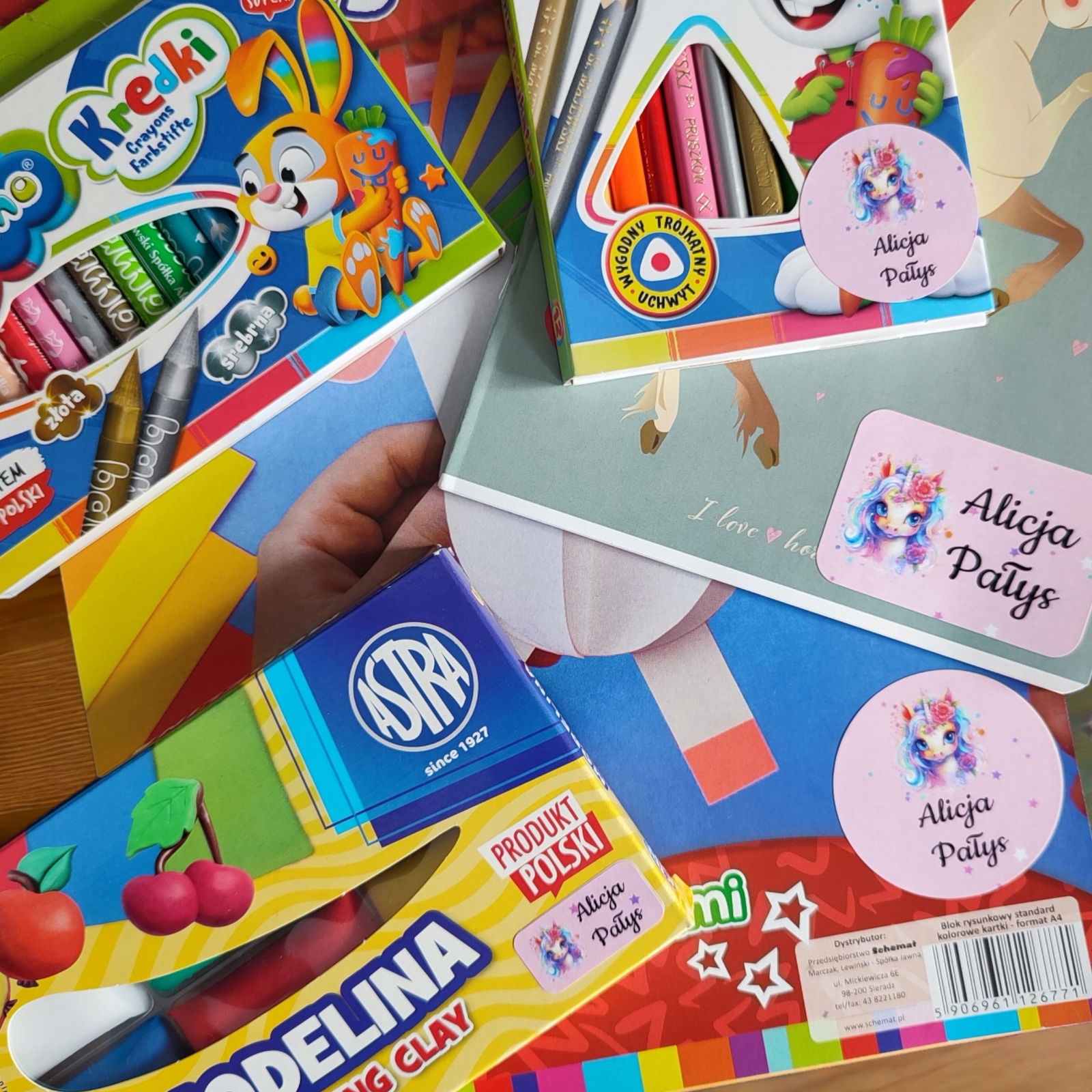 NAKLEJKI PERSONALIZOWANE Z FOLII SAMOPRZYLEPNEJ DLA DZIECI DO SZKOŁY I PRZEDSZKOLA 90szt