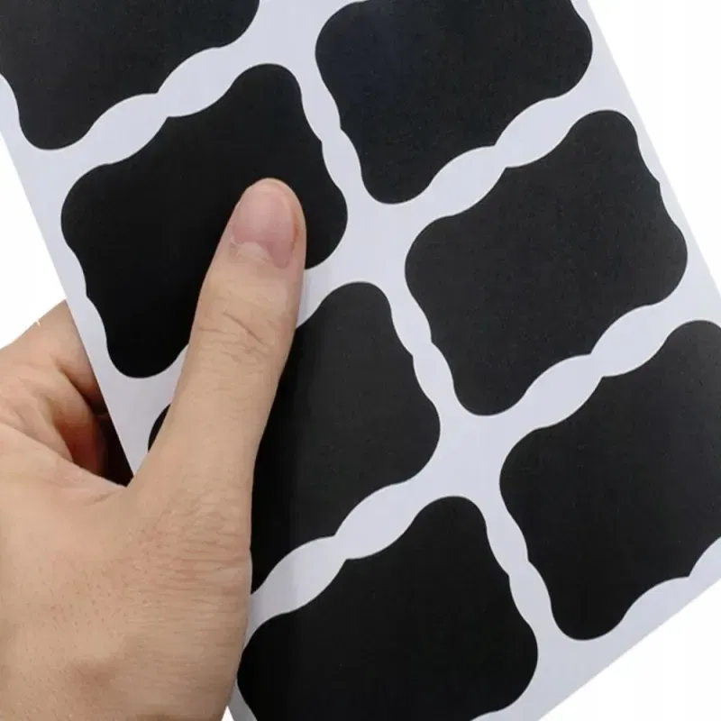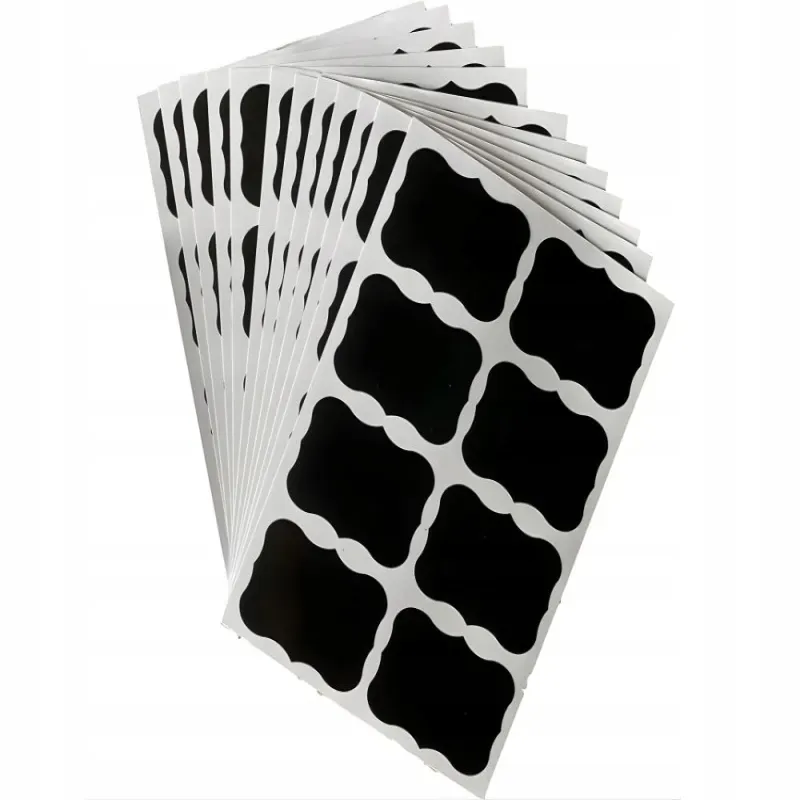 Zestaw czarnych etykiet samoprzylepnych przeznaczonych do opisywania słoików, pojemników, przypraw, produktów sypkich oraz akcesoriów domowych. Idealne rozwiązanie do kuchni, spiżarni, biura, łazienki lub magazynu.