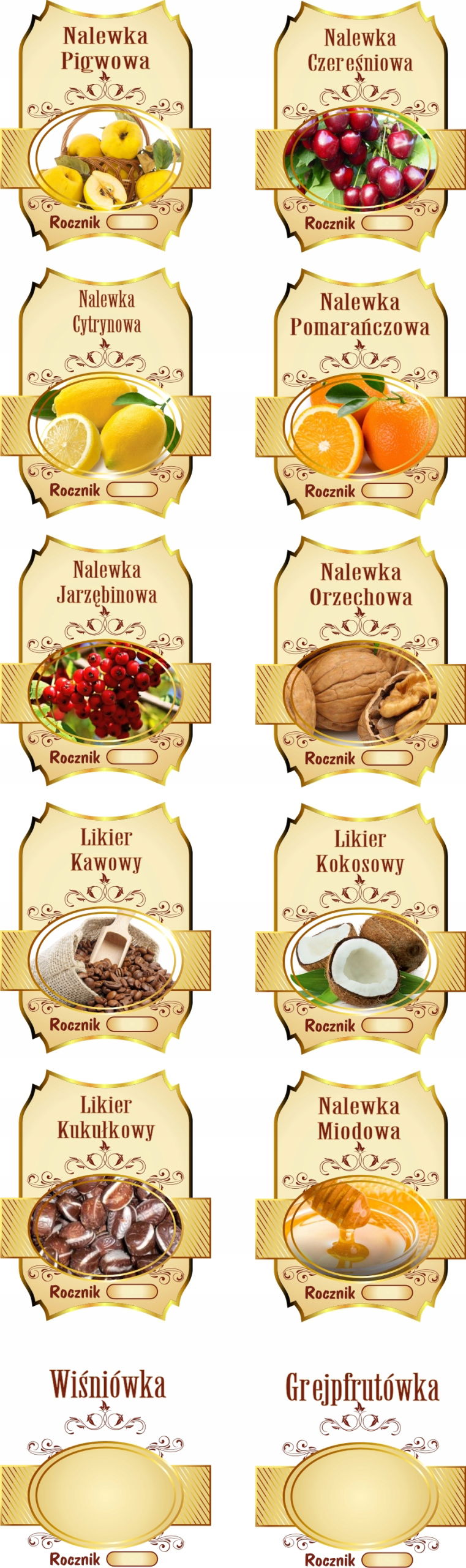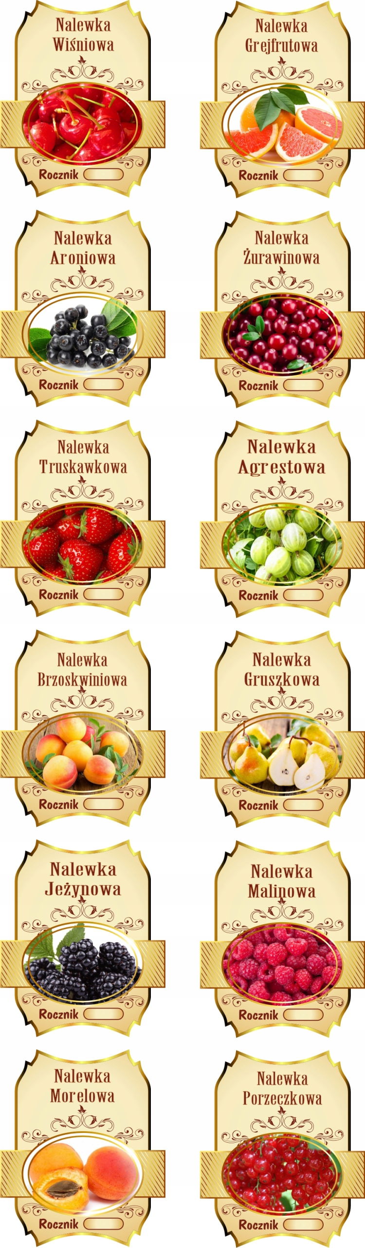 Aukcja dotyczy kompletu 8 etykiet o wymiarach: 73 x 61 mm