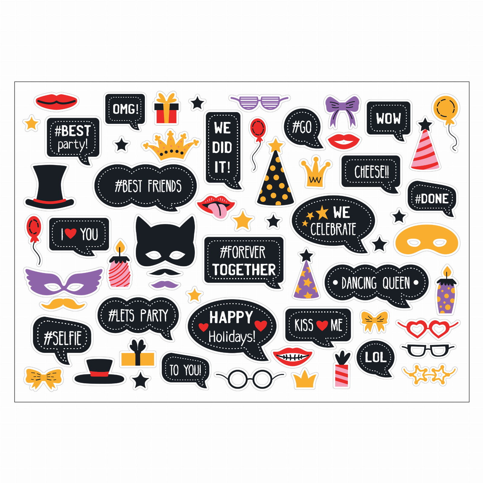 Samoprzylepne naklejki mają nacięte obrysy kształtów - goście bez problemu je odkleją!
