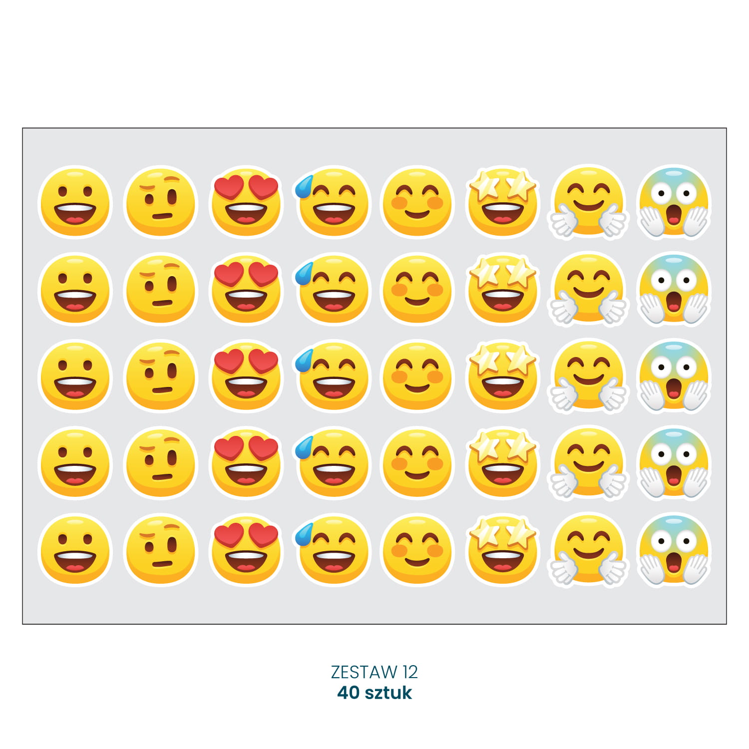 W zestawie 12 znajduje się 1 arkusz o wymiarze 210x148mm na którym mieści się 40 szt naklejek