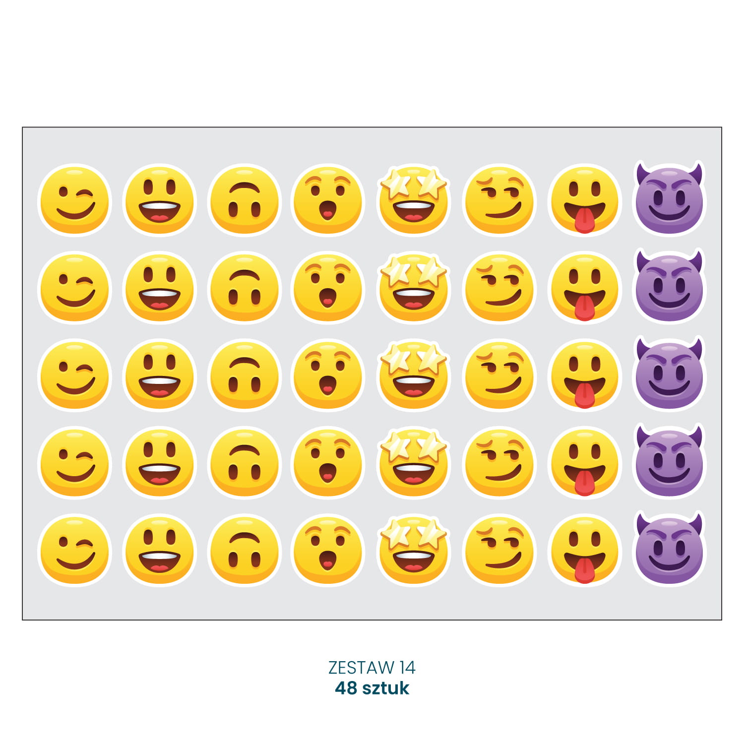W zestawie 14 znajduje się 1 arkusz o wymiarze 210x148mm na którym mieści się 48 szt. naklejek