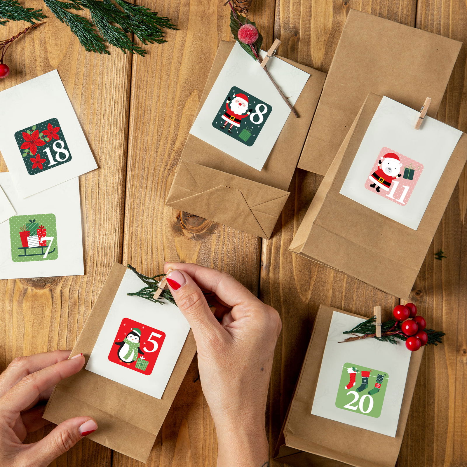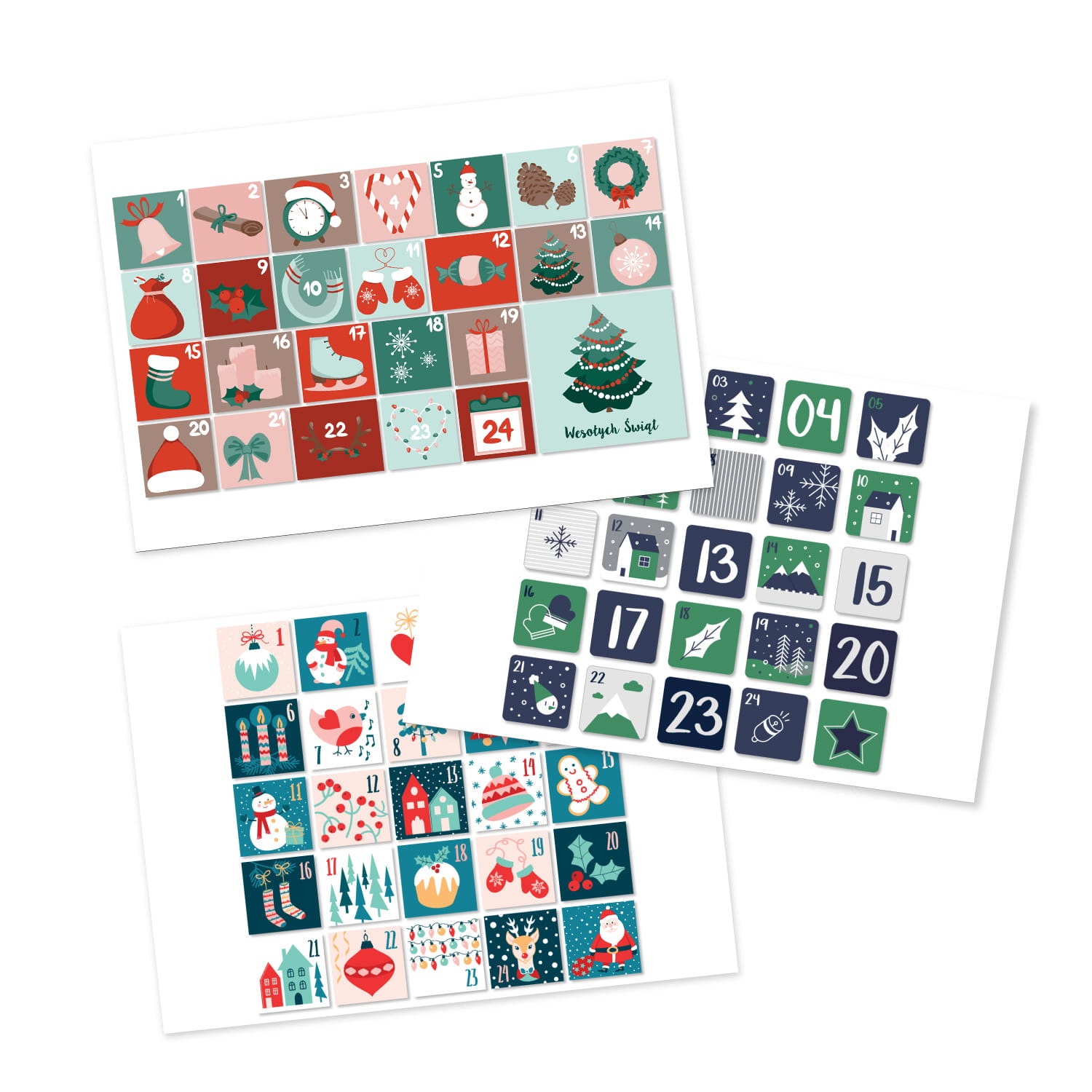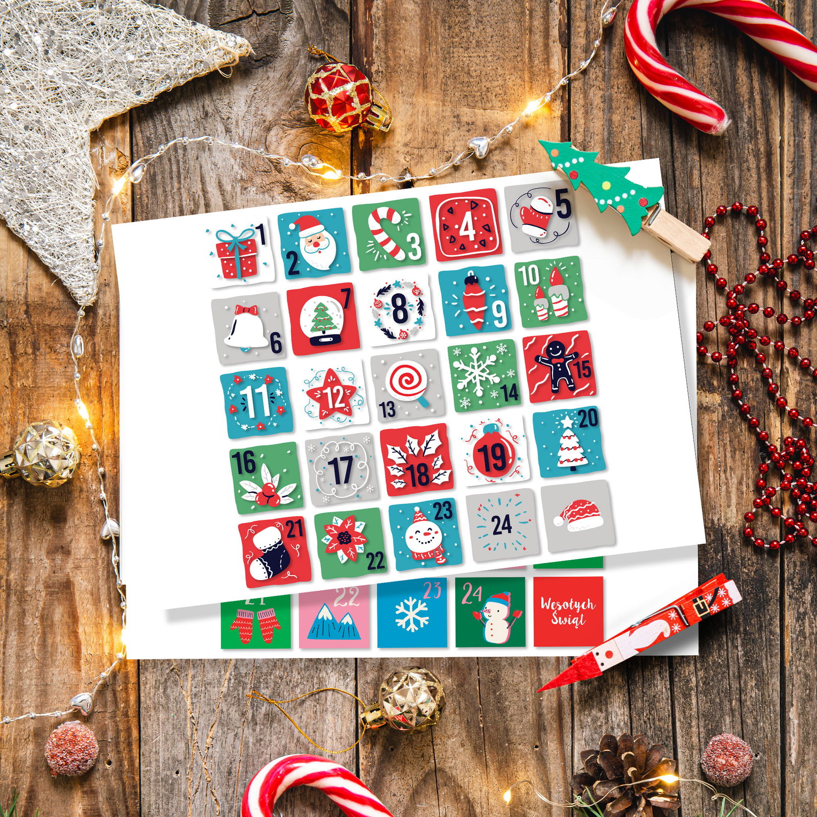 Naklejki świąteczne z numerkami to idealna dekoracja do kalendarza adwentowego. Dzięki naklejkom na kalendarz adwentowy stworzysz dowolną techniką swój własny, niepowtarzalny kalendarz. Naklejki adwentowe możesz umieścić na papierowych torebeczkach lub kartonikach. Wszystko zależy od Waszej kreatywności. Każda naklejka to inny motyw świąteczny. Naklejki posiada numerki, którymi oznaczysz kolejne dni adwentu.