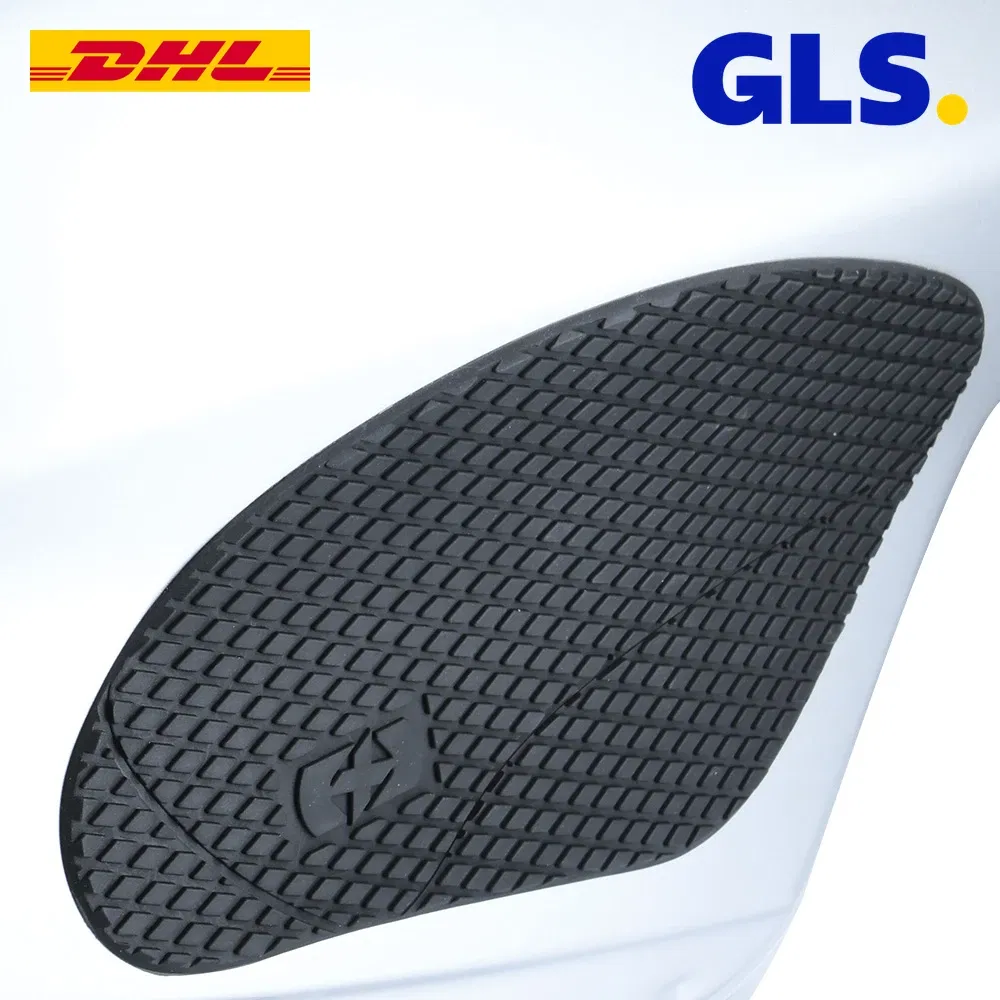 - Montaż musi odbywać się na idealnie odtłuszczonej powierzchni w temperaturze powyżej $20°C$. Po naklejeniu stompgripów należy odczekać minimum $24-48$ godzin przed pierwszą jazdą, aby klej akrylowy uzyskał pełną siłę wiązania z lakierem zbiornika.